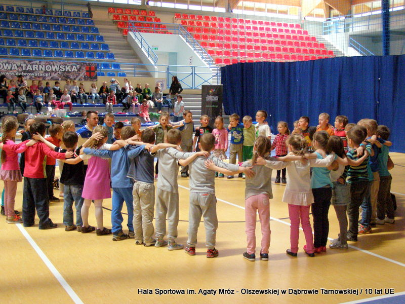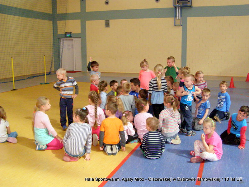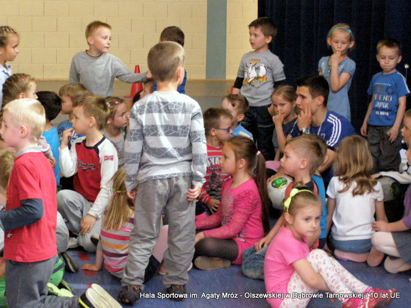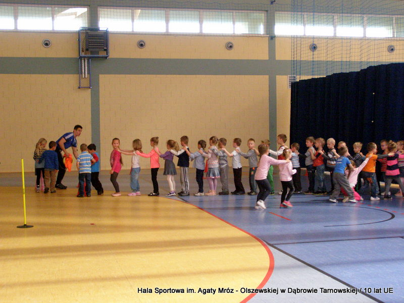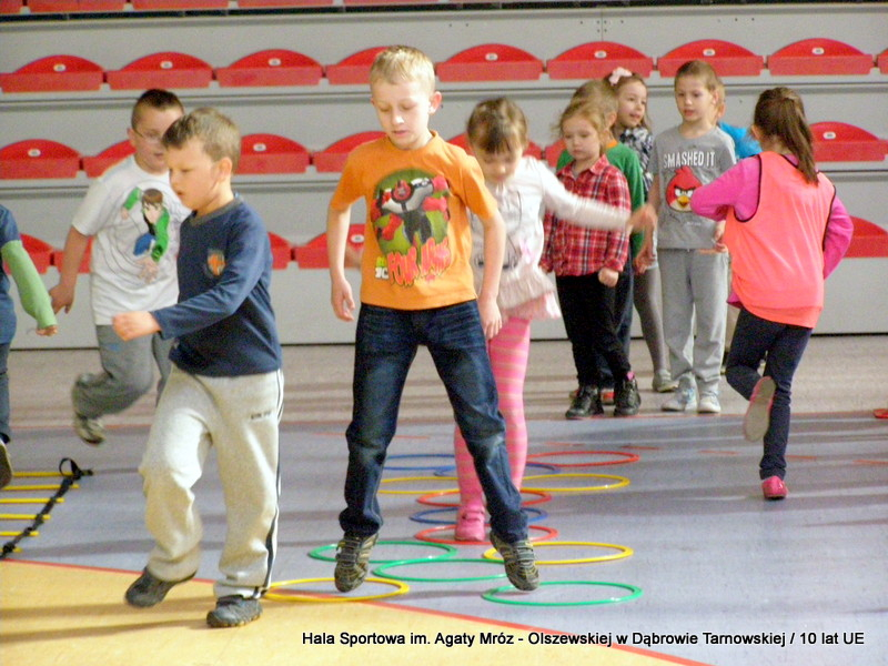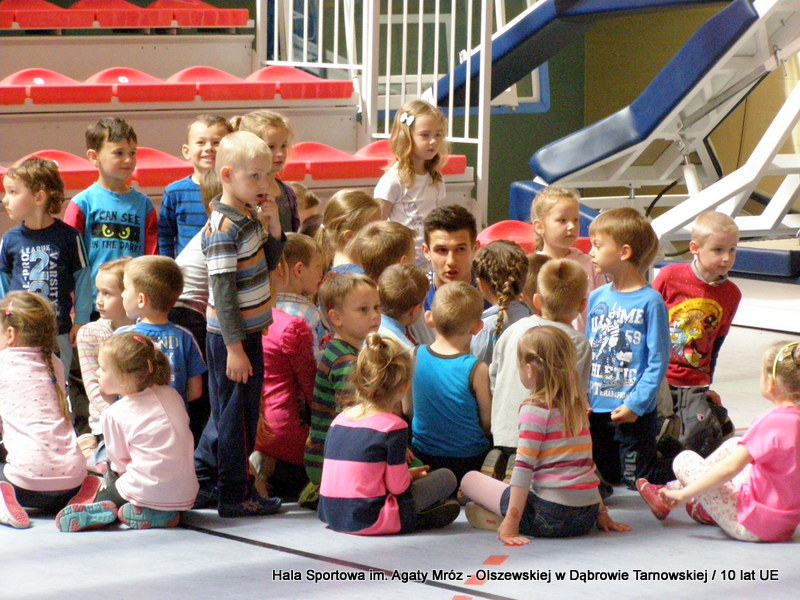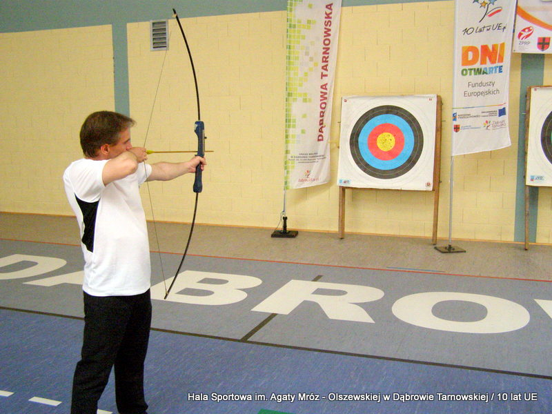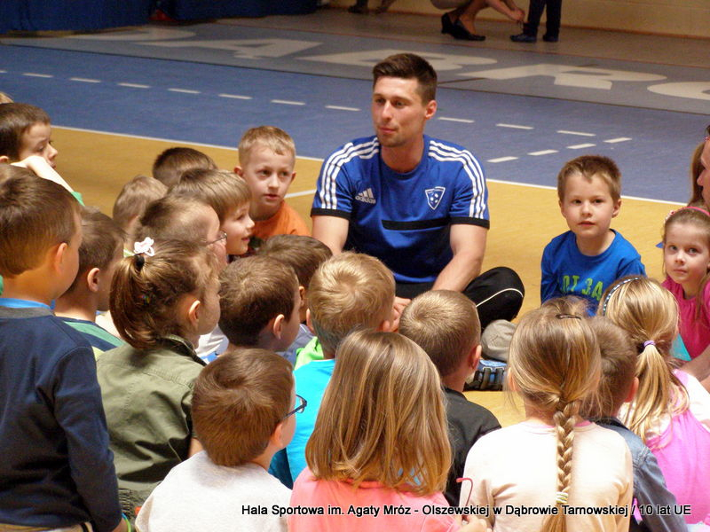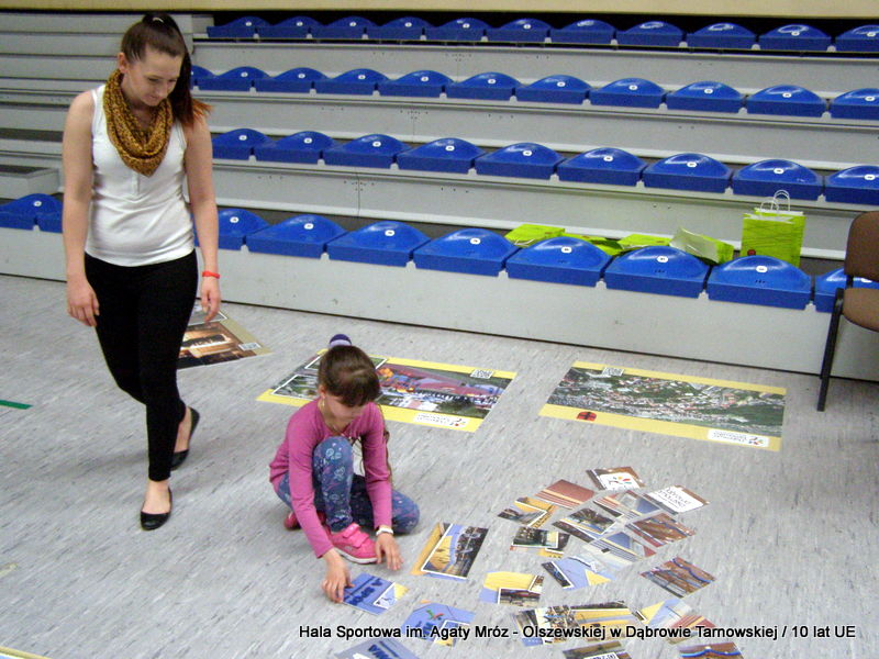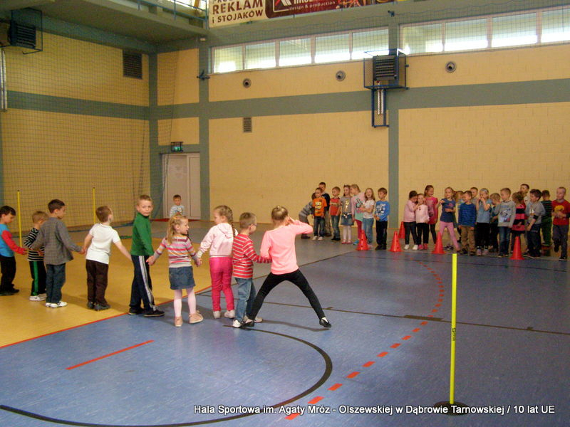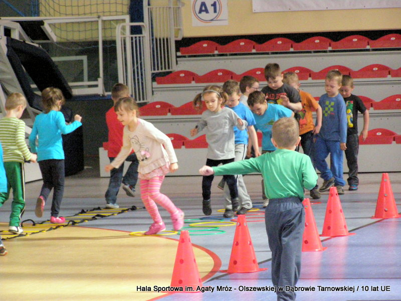 W niedzielę 11 maja przedszkolaki i starsze dzieci czekały wspaniałe atrakcje. Pracownica Referatu Kultury Fizycznej i Sportu Urzędu Miejskiego w Dąbrowie Tarnowskiej Anna Chmura przygotowała szereg zabaw i gier oraz specjalny tor z przeszkodami. Na zmęczonych czekała niesamowita niespodzianka w postaci puzzli, które przedstawiały obiekty w Dąbrowie Tarnowskiej, współfinansowane z funduszy Unii Europejskiej. Wiceprezes MLKS „Dąbrovia” Dawid Kot również miał przygotowane ciekawe zajęcia. Każda chętna osoba mogła zgłębić tajniki łucznictwa, spróbować strzelić do tarczy i zobaczyć z czym muszą zmierzyć się zawodnicy trenujący tę dyscyplinę sportu. Ponad to w godzinach 16:00 – 18:00 halę sportową można było zwiedzić. Chętne osoby zostały oprowadzone z przewodnikiem po miejscach które na co dzień są niedostępne, poznać historię budowy tego wspaniałego obiektu, jak również dowiedzieć się o najważniejszych imprezach sportowych które zostały przeprowadzone w Hali Sportowej im Agaty Mróz – Olszewskiej.