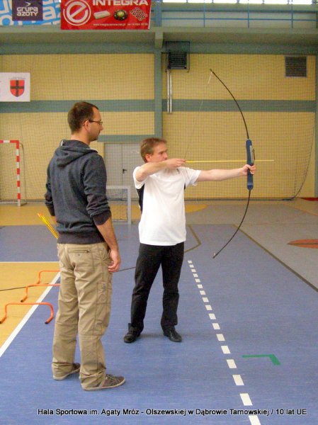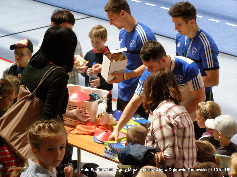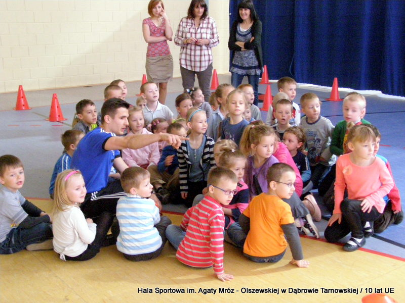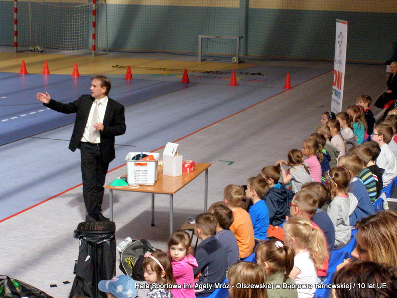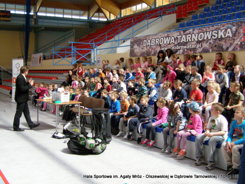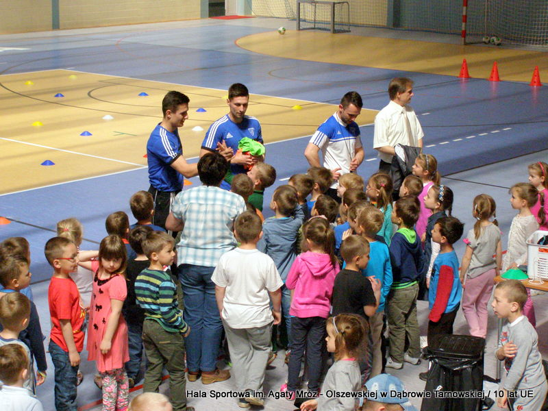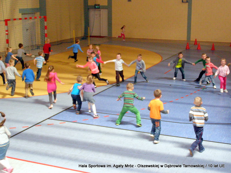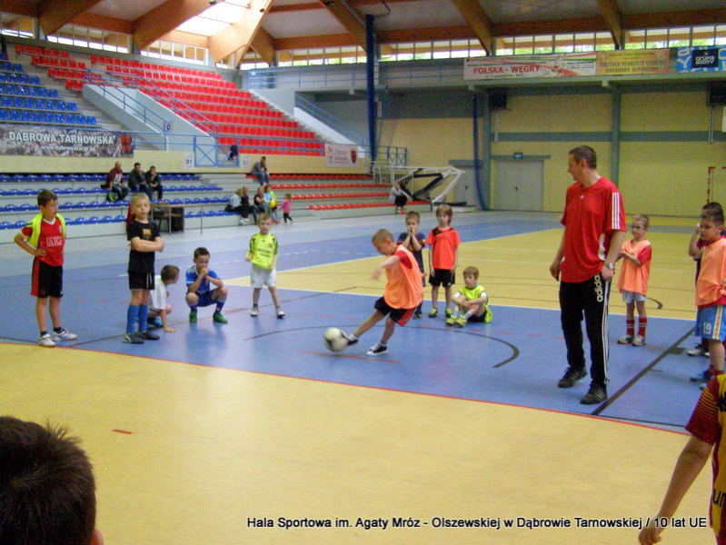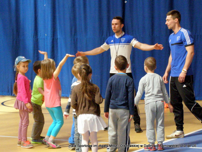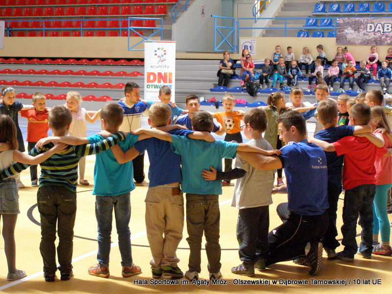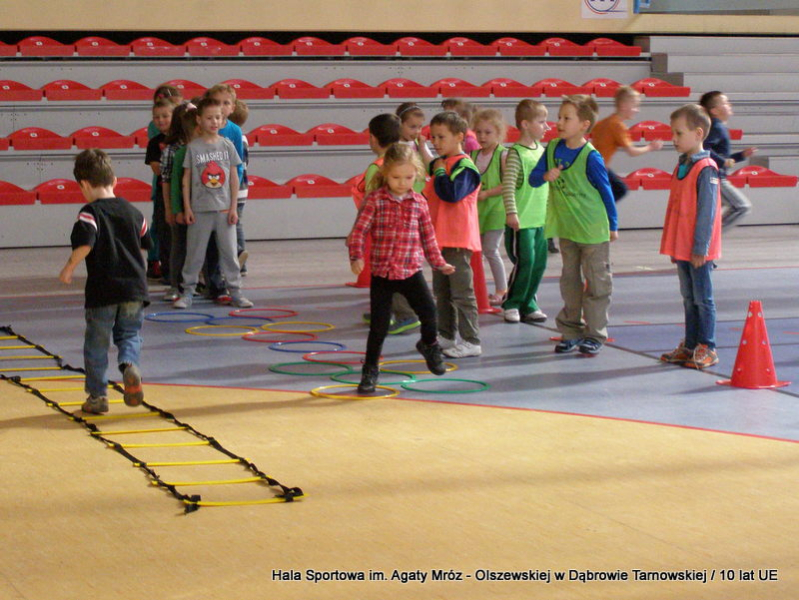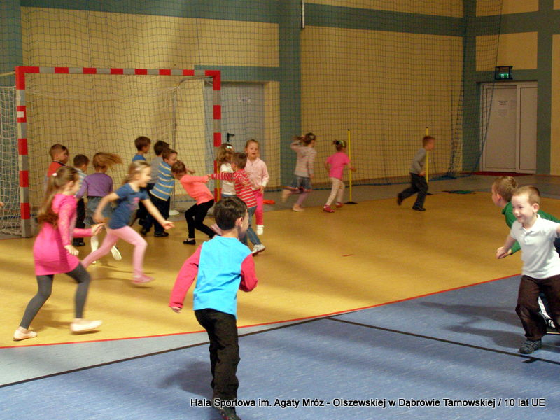 W niedzielę 11 maja przedszkolaki i starsze dzieci czekały wspaniałe atrakcje. Pracownica Referatu Kultury Fizycznej i Sportu Urzędu Miejskiego w Dąbrowie Tarnowskiej Anna Chmura przygotowała szereg zabaw i gier oraz specjalny tor z przeszkodami. Na zmęczonych czekała niesamowita niespodzianka w postaci puzzli, które przedstawiały obiekty w Dąbrowie Tarnowskiej, współfinansowane z funduszy Unii Europejskiej. Wiceprezes MLKS „Dąbrovia” Dawid Kot również miał przygotowane ciekawe zajęcia. Każda chętna osoba mogła zgłębić tajniki łucznictwa, spróbować strzelić do tarczy i zobaczyć z czym muszą zmierzyć się zawodnicy trenujący tę dyscyplinę sportu. Ponad to w godzinach 16:00 – 18:00 halę sportową można było zwiedzić. Chętne osoby zostały oprowadzone z przewodnikiem po miejscach które na co dzień są niedostępne, poznać historię budowy tego wspaniałego obiektu, jak również dowiedzieć się o najważniejszych imprezach sportowych które zostały przeprowadzone w Hali Sportowej im Agaty Mróz – Olszewskiej.