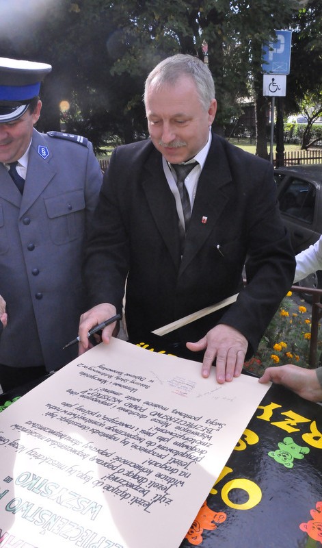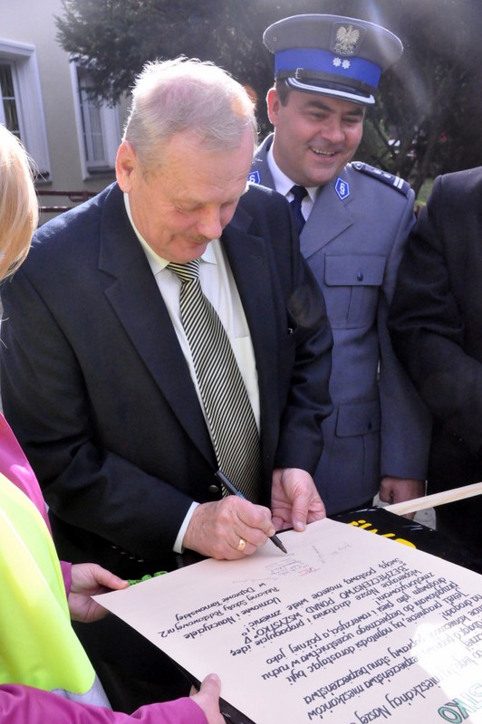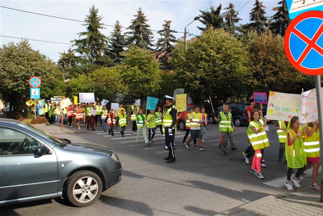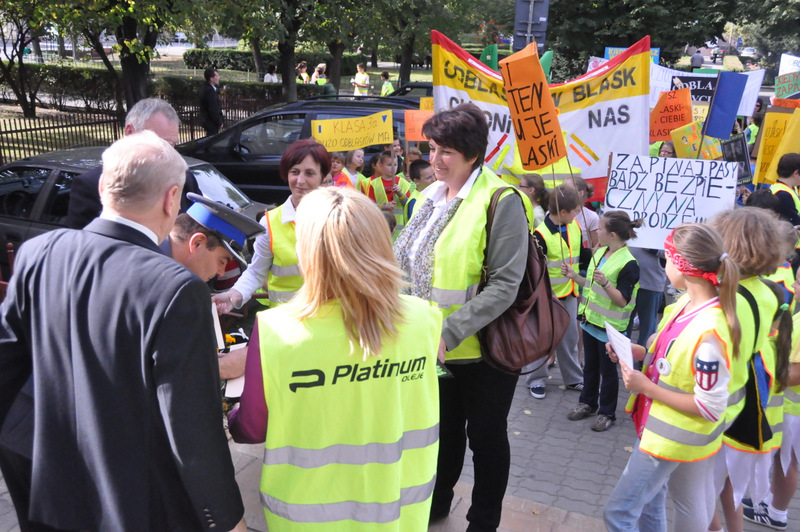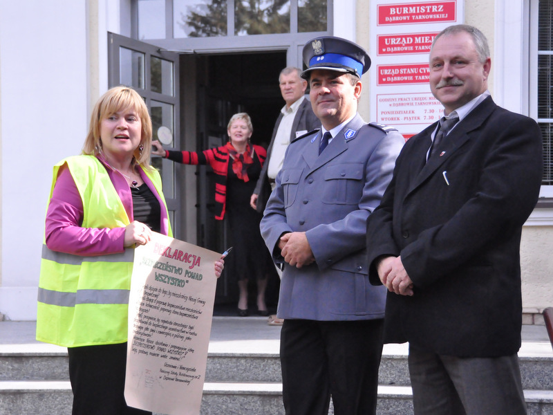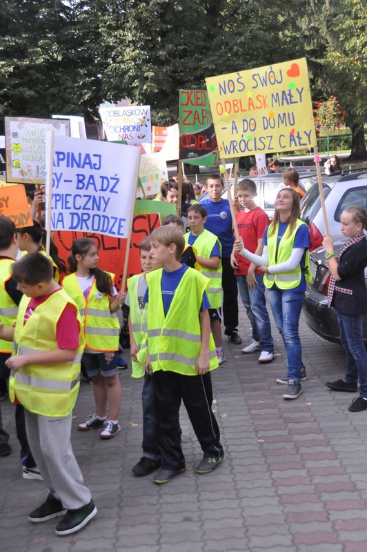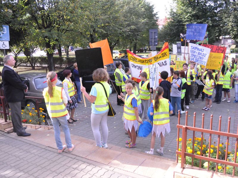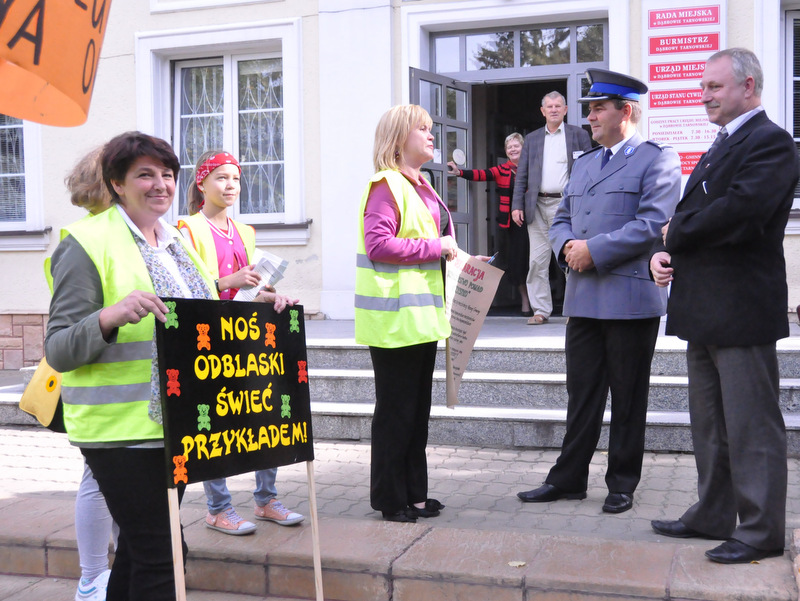 Głównym celem wydarzenia było zwrócenie uwagi na konieczność bezpiecznego poruszania się w ruchu drogowym, do czego w znacznej mierze przyczynia się noszenie odblasków. Uczniowie wyposażeni w kamizelki odblaskowe z użyciem własnoręcznie wykonanych transparentów oraz przy pomocy specjalnie przygotowanych na tę okazję ulotek uświadamiali uczestnikom ruchu ulicznego, jak ważne dla naszego zdrowia i życia jest dbanie o bezpieczeństwo. Uczniowie rozdali przechodniom ponad 100 ulotek informujących o prawidłowym zachowaniu na drodze, a w trakcie wizyty pod Urzędem Miasta i Gminy przeczytano deklarację „Bezpieczeństwo ponad wszystko”, którą podpisał Burmistrz Dąbrowy Tarnowskiej Stanisław Początek, Zastępca Burmistrza Marek Minorczyk  oraz  mł. insp. Andrzej Kupiec. Pan Burmistrz wyraził zadowolenie z podjętej inicjatywy integrującej środowisko szkolne i lokalne we wspólnym promowaniu bezpieczeństwa. Deklaracja w tym dniu została jeszcze odczytana i podpisana w Dąbrowskim Domu Kultury, Powiatowej Stacji Sanitarno-Epidemiologicznej, Sądzie Rejonowym oraz w Przedszkolu nr 1. Dziękujemy wszystkim instytucjom za aktywny udział w akcji, a szczególne podziękowania kierujemy do władz samorządowych za przyjęcie zaproszenia oraz do wydziału ruchu drogowego Komendy Powiatowej Policji za pomoc w organizacji przedsięwzięcia i asekurację przemarszu przez st. sierż. Pawła Chwałka oraz asp. szt. Jarosława Kmiecia.