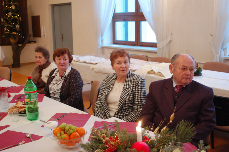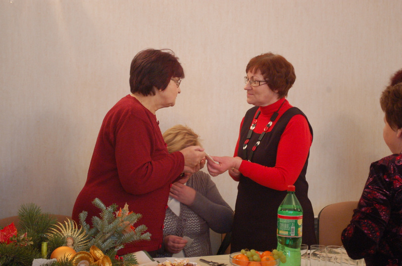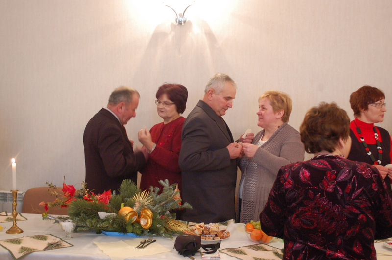 Podczas spotkania uczestnicy składali sobie życzenia, łamali się opłatkiem i śpiewali kolędy.