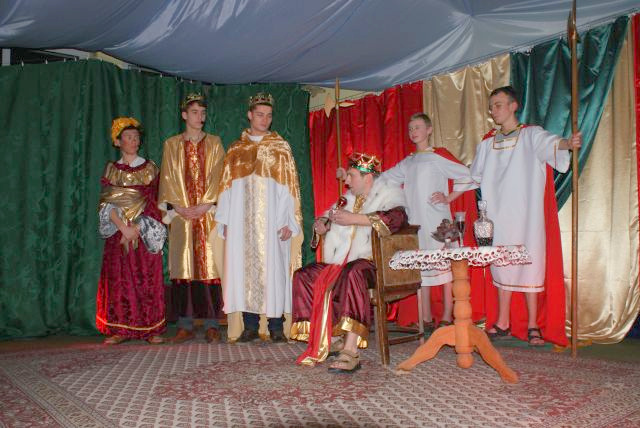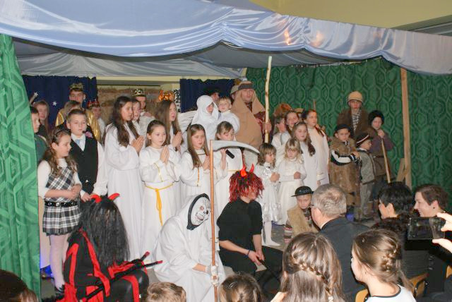 Przedstawione zostały w sposób bardzo sugestywny, a niekiedy i humorystyczny sceny: poszukiwanie przez Maryję i Józefa miejsca na nocleg, rozmowy pastuszków, w pałacu Heroda oraz spotkanie wszystkich przy żłobku narodzonego Jezuska. Sceny przeplatane były kolędami w wykonaniu świetlicowego chórku, pod kierunkiem Katarzyny Tabor (organy) przy akompaniamencie skrzypiec (Justyna Cabała), gitary (Marysia Rygielska) i akordeonu (Ks. Bogdan Lebryk).