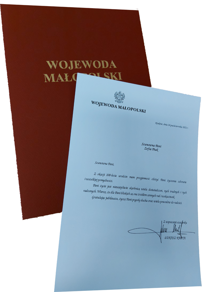 Z okazji urodzin Czcigodnej Jubilatce życzymy przeżycia kolejnych wielu lat w zdrowiu, miłości najbliższych, życzliwości bliskich ludzi, a rodzinie siły i wytrwałości w każdym dniu opieki nad Jubilatką. Jeszcze raz serdecznie gratulujemy tak pięknego Jubileuszu!