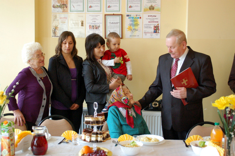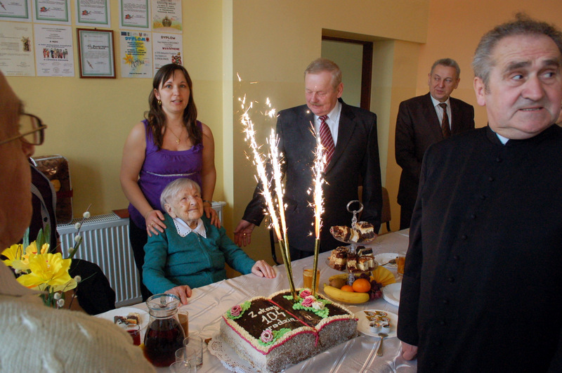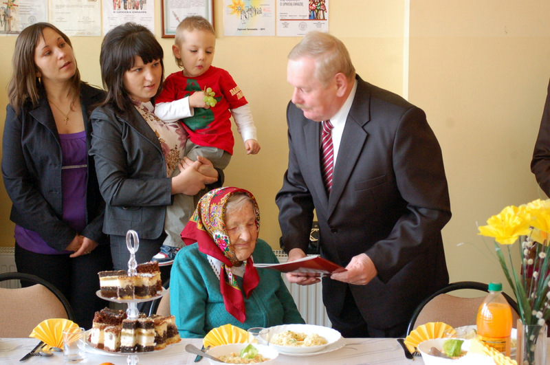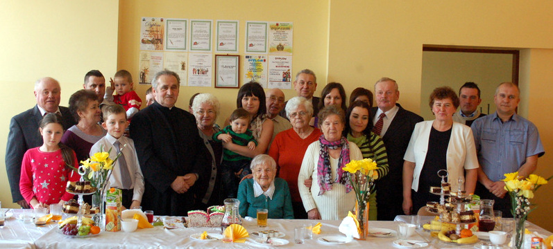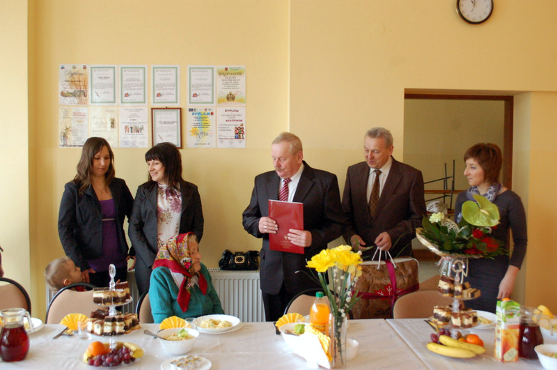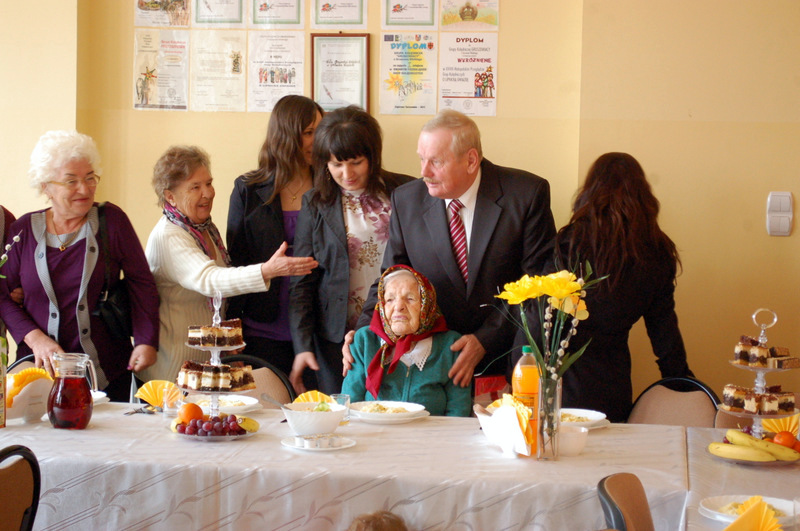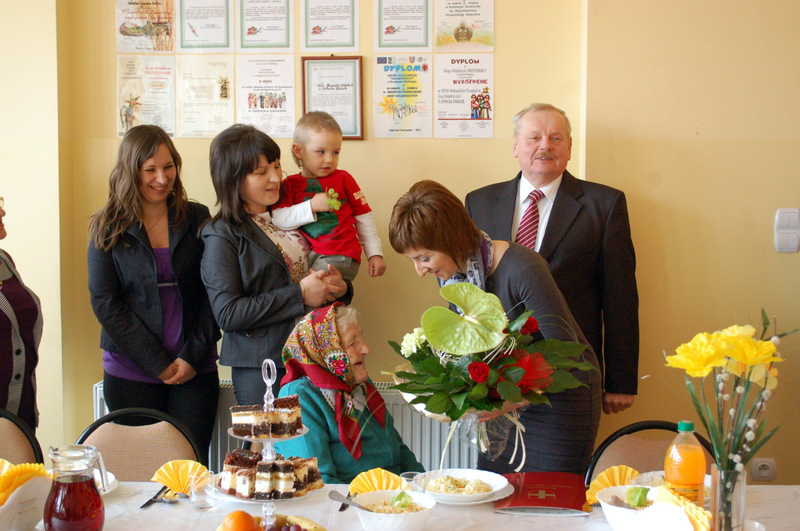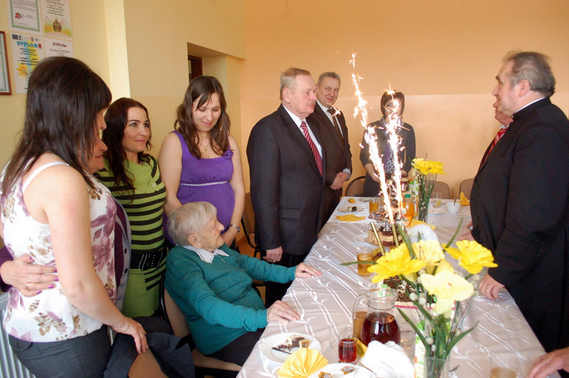 Życzenia Szanownej Jubilatce złożyli: Burmistrz Dąbrowy Tarnowskiej Pan Stanisław Początek, Proboszcz parafii ks. Stanisław Żurat, Sołtys Gruszowa Wielkiego Pani Józefa Taraska, Sekretarz Gminy Dąbrowa Tarnowska Pan Stanisław Ryczek, oraz Kierownik Urzędu Stanu Cywilnego w Dąbrowie Tarnowskiej Pani Magdalena Pinas. Uroczystość została przygotowana z inicjatywy Pani Józefy Taraski - sołtysa Gruszowa Wielkiego i radnej Rady Miejskiej. Uroczystość uświetnił zespół Albatros z Gruszowa Wielkiego.