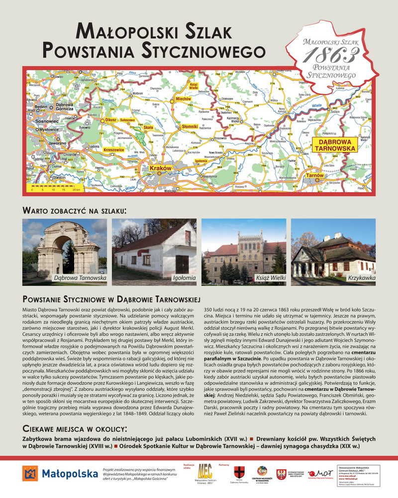 Dzisiaj mija 152. rocznica wybuchu Powstanie Styczniowego, które objęło swym zasięgiem Królestwo Polskie znajdujące się pod zaborem rosyjskim. Miało charakter wojny partyzanckiej, podczas której stoczono ponad 1200 bitew i potyczek. Powstanie Styczniowe było największym polskim zrywem narodowym w XIX wieku i przyniosło sympatię dla sprawy polskiej na arenie międzynarodowej. Chociaż zakończyło się klęską miało istotny wpływ na utrzymanie polskiej tożsamości nie tylko na terenie zaboru rosyjskiego, ale także w pozostałych dwóch zaborach. Powstanie Styczniowe nie przeszło bez echa w Dąbrowie Tarnowskiej, gdzie Ludwik Zakrzewski organizował grupy chłopskie do działań wyzwoleńczych. Aktywizował środowisko wiejskie i miejskie zyskując przy tym zaufanie ludzi oraz szacunek całego tutejszego społeczeństwa. Pamięć o Zakrzewskim przetrwała do dnia dzisiejszego; dzięki staraniom Związku Dąbrowiaków i osobistemu zaangażowaniu pana doktora Mieczysława Siudzińskiego odnowiony został pomnik tego patrioty. W dniu wybuchu powstania sześć tysięcy przeciwników caratu zaatakowało rosyjskie garnizony w Królestwie Polskim. Powstanie rozszerzyło się na cały kraj, a następnie na tereny Litwy, Białorusi i Ukrainy. Działania zbrojne trwały do jesieni 1864 r., a tak zwane „państwo podziemne” funkcjonowało do 1865 r. Pomimo klęski militarnej, umocniło ono polską świadomość narodową, miało też wpływ na dążenia niepodległościowe następnych pokoleń. Jednocześnie trudno zapomnieć o ofiarach jakie pochłonęło – zginęło w nim 20 tysięcy Polaków, a dwa razy tyle zostało zesłanych na Syberię. Po jego stłumieniu zlikwidowane zostały resztki autonomii Królestwa Polskiego, wzmożono rusyfikację Polaków i represje wobec nich.
