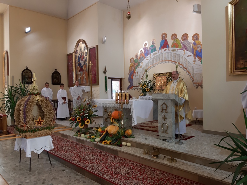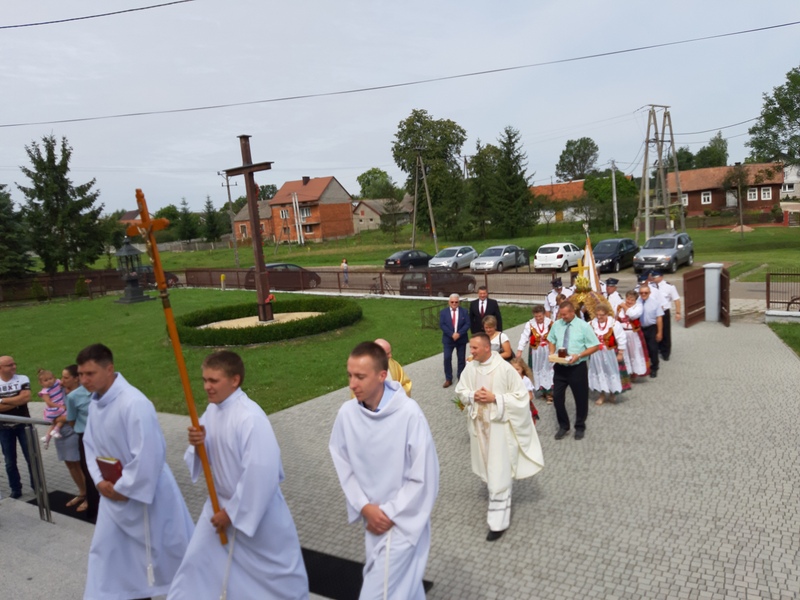 Mszę św. dziękczynną za zebrane plony odprawił ks. proboszcz Marek Lasek, a ks. Marcin Kurmaniak wygłosił okolicznościową homilię. Wśród zaproszonych gości byli Burmistrz Dąbrowy Tarnowskiej Krzysztof Kaczmarski, Zastępca Przewodniczącego Rady Miejskiej Jacek Sarat, Sekretarz Gminy Stanisław Ryczek.