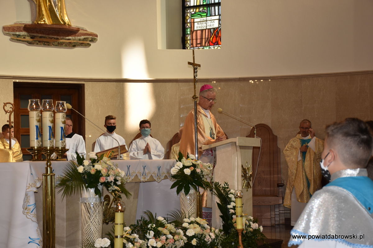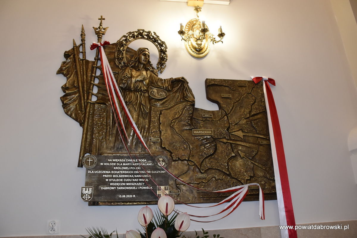 W sobotę, 15 sierpnia 2020 roku, w stolicy powiatu dąbrowskiego świętowano 100. rocznicę Bitwy Warszawskiej inaczej nazywaną „Cudem nad Wisłą”. Pomimo panującej epidemii w całym kraju z radością i dumą obchodzono tę patriotyczną rocznicę odepchnięcia Armii Czerwonej z państwa polskiego. Samorządowcy z Powiśla Dąbrowskiego i lokalna społeczność również upamiętniła tamte wydarzenia. W sobotnie przedpołudnie w kościele parafialnym pw. MB Szkaplerznej w Dąbrowie Tarnowskiej odbyła się uroczysta msza święta z udziałem biskupa tarnowskiego ks. Wiesława Lechowicza. Ksiądz biskup w koncelebrze z proboszczem parafii ks. Stanisławem Cyranem oraz ks. prałatem Józefem Porembą modlili się w intencji ojczyzny, jej obrońców z czasów wojny polsko-bolszewickiej oraz ofiary Katynia. W uroczystościach udział wzięli między innymi Poseł na Sejm RP Wiesław Krajewski, Starosta Dąbrowski Lesław wieczorek, Wicestarosta Krzysztof Bryk, Burmistrz Dąbrowy Tarnowskiej Krzysztof Kaczmarski, Przedstawiciele Ofiar Rodzin Katyńskich, Cech Rzemiosł Różnych, Jednostka Strzelecka JS-2083, Drużyna Orląt z Lubasza oraz licznie zgromadzona społeczność lokalna.