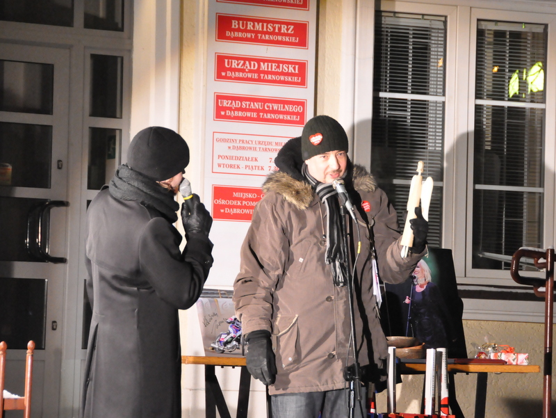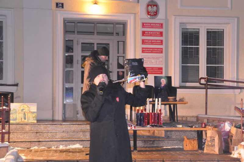 Tegoroczny Finał Wielkiej Orkiestry Świątecznej Pomocy, chociaż odbywał się w bardzo mroźnej aurze zgromadził wielu mieszkańców Dąbrowy Tarnowskiej. „Światełko do nieba” 2013, które wystrzeliło w całej Polsce o godz. 20:00 rozjaśniło także niebo naszego miasta. Pokaz fajerwerków przed Urzędem Miejskim o godz. 20:00 wprawił zebranych w zachwyt, zwłaszcza, że towarzyszył mu podkład muzyczny - „Walc kwiatów” z baletu „Dziadek do orzechów” Piotra Czajkowskiego. Przeprowadzona bezpośrednio po pokazie licytacja była okazją do nabycia unikatowych gadżetów: m.in. koszulki z Einsteinem czy zespołu AC Milan oraz zestawy przygotowane przez Urząd Miejski. Były także autografy: Jarosława Kreta, Kory, Jurka Owsiaka. Dokładne informacje na temat wyników zbiórki pieniędzy zostaną podane w najbliższych dniach. Wstępne przeliczenia z samych puszek 90 wolontariuszy są pomyślne i dają sumę 24,534,02 zł. Dojdą do tego kolejne kwoty pochodzące z licytacji i koncertów.