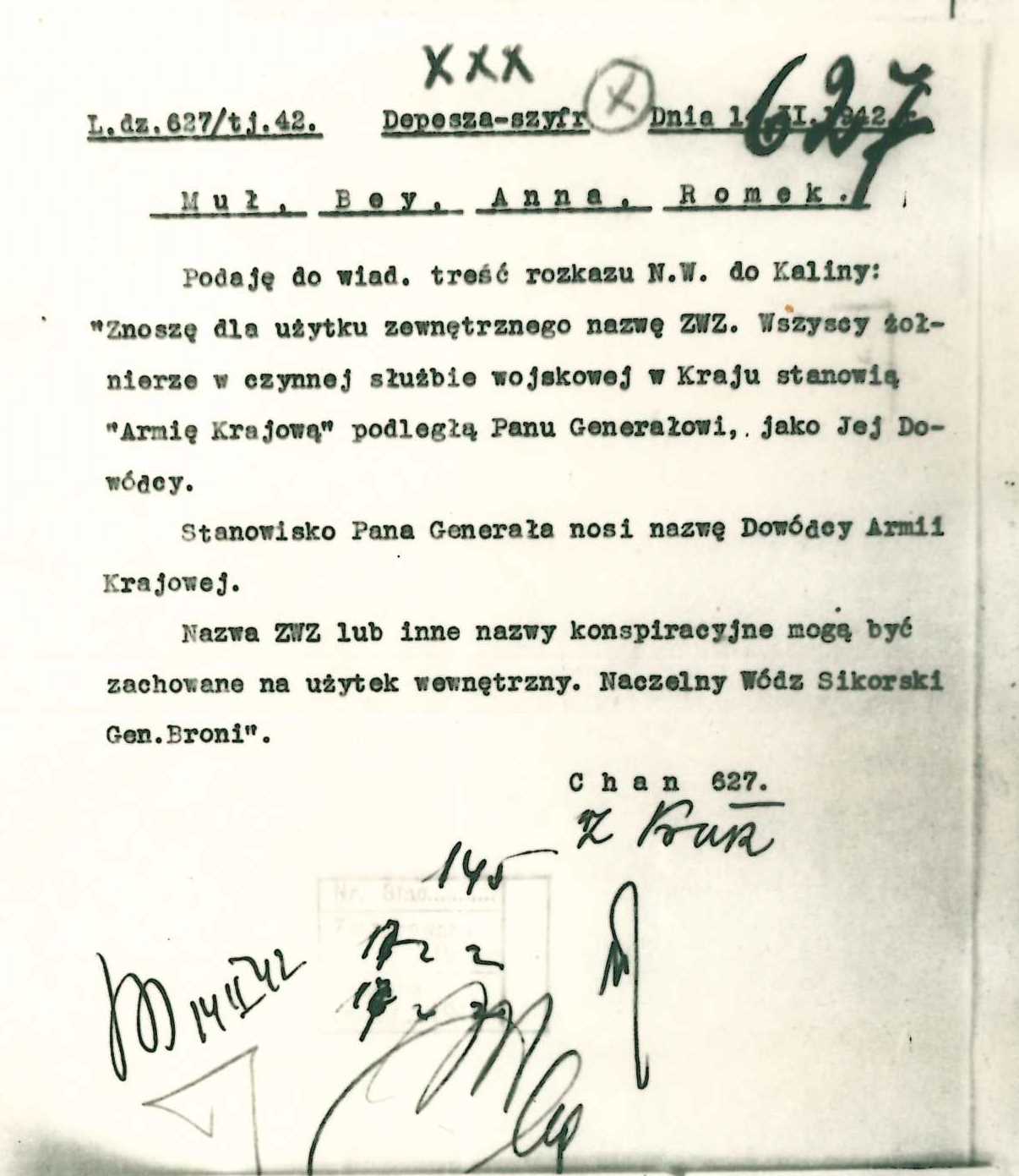 Prezydentowi Rzeczypospolitej Polskiej i rozkazom Naczelnego Wodza oraz wyznaczonemu przezeń Dowódcy Armii Krajowej będę bezwzględnie posłuszny, a tajemnicy niezłomnie dochowam, cokolwiek by mnie spotkać miało. Tak mi dopomóż Bóg.
