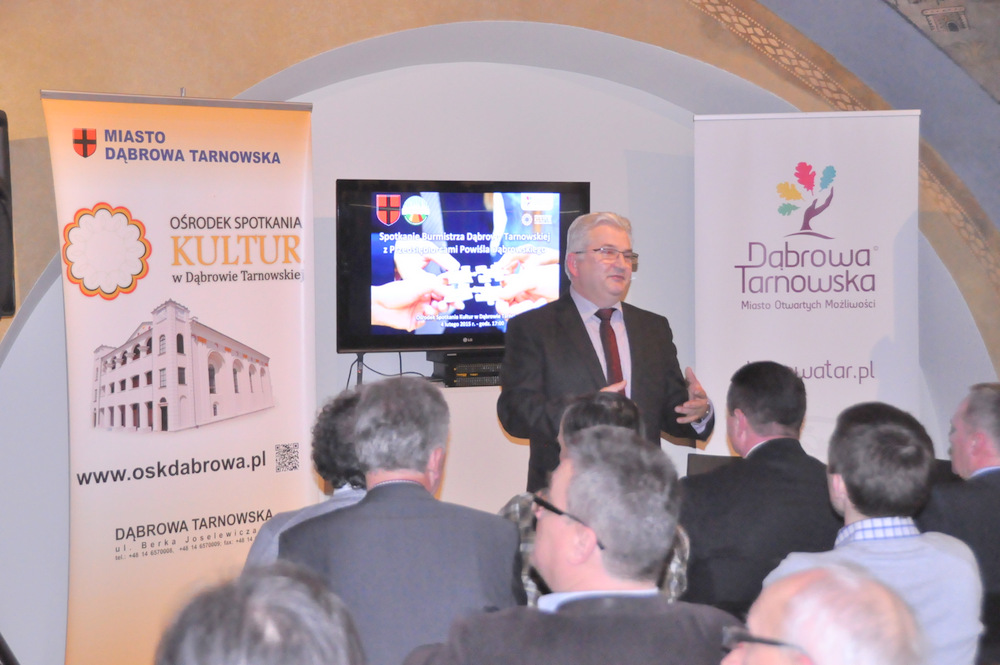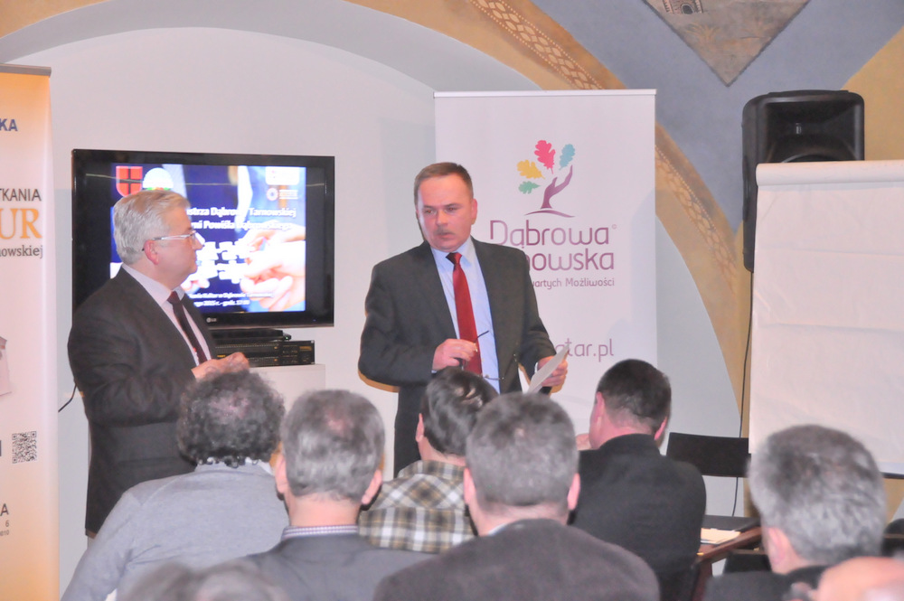 O swoich doświadczeniach związanych z uzyskaniem zezwolenia na prowadzenie inwestycji w dąbrowskiej specjalnej strefie ekonomicznej opowiedział Andrzej Pikul, właściciel spółki z o.o. Somika z siedzibą w Luszowicach. Spółka ma ambitne plany rozwoju w zakresie m.in. produkcji mebli głównie na eksport i plany te chce realizować właśnie na terenie strefy. Zasady przyznawania pomocy de minimis oraz tematykę pozyskiwania funduszy unijnych przybliżył zebranym Zastępca Burmistrza Dąbrowy Tarnowskiej Stanisław Ryczek. Zapewnił, że Urząd Miejski służy doświadczeniem i pomocą w zakresie przygotowywania takich wniosków.