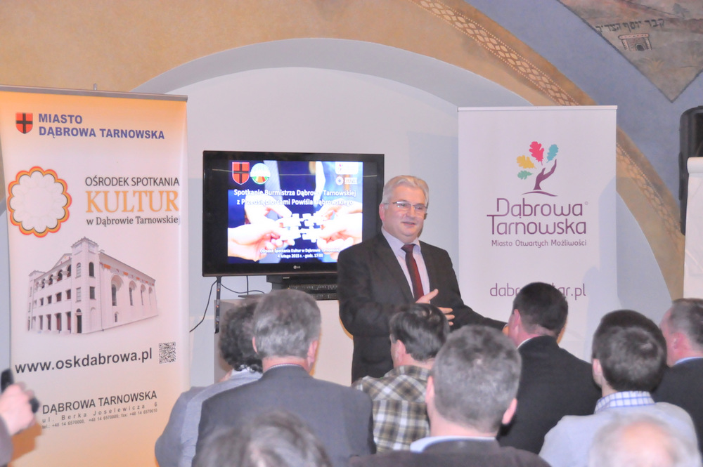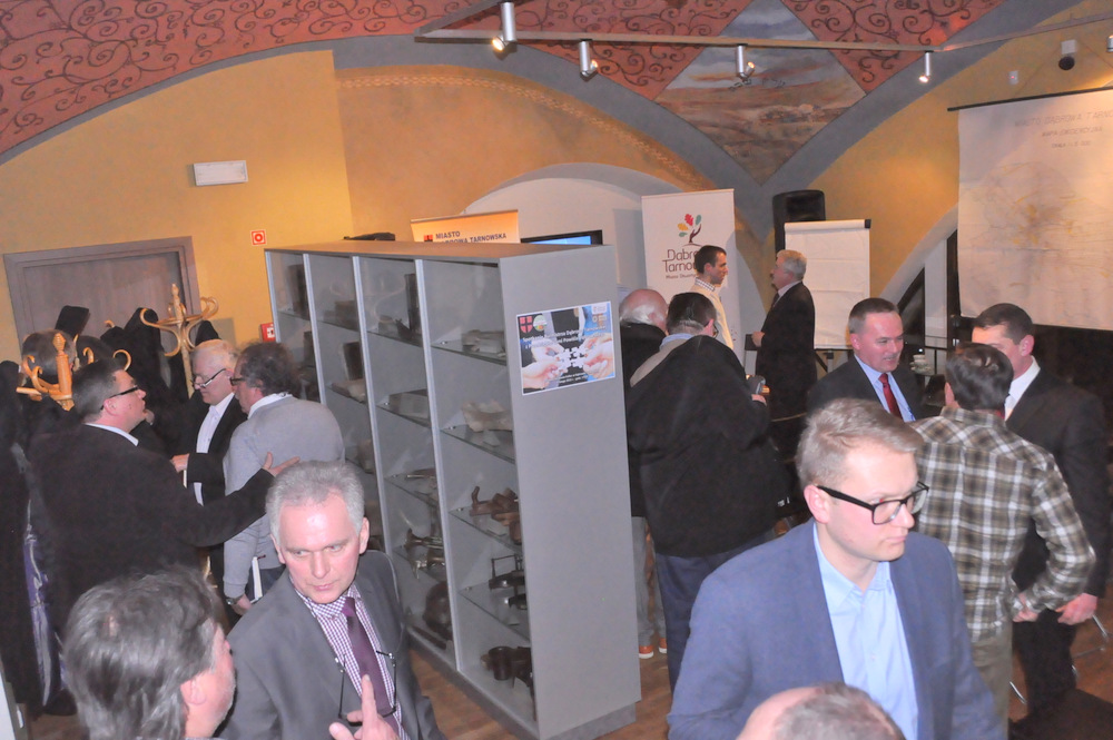 Burmistrz Dąbrowy Tarnowskiej zaproponował jeszcze ściślejszą współpracę samorządu z przedsiębiorcami poprzez utworzenie w Urzędzie Miejskim punktu obsługi biznesu. Krzysztof Kaczmarski wspomniał także o utworzeniu Rady Przedsiębiorców przy Burmistrzu Dąbrowy Tarnowskiej spośród przedsiębiorców zrzeszonych w organizacjach i stowarzyszeniach działających na naszym terenie oraz niezrzeszonych. Spotkało się to z akceptacją i zapewnieniem o wyborze tych przedstawicieli już na następnym spotkaniu. Goście wyrazili chęć uczestnictwa w podobnych spotkaniach raz na kwartał. Wszyscy zgodnie przyznali, że stymulacja rozwoju gospodarczego jest dużym wyzwaniem dla naszej gminy, ale warto je podjąć. Użyto metafory puzzli, wskazując na wkład poszczególnych stron w zrównoważony rozwój – zarówno przedsiębiorcy, jak i samorząd muszą dołożyć swoją część. Dyskusje kontynuowano w kuluarach przy kawie i herbacie. Goście mieli także możliwość zwiedzenia Ośrodka Spotkania Kultur (synagoga) z przewodnikiem Karoliną Pikul (z Ref. PKiI UMDT), z czego skorzystało kilka osób, zaznaczając, że warto tu będzie wrócić i zobaczyć ten piękny obiekt w szerszym gronie.