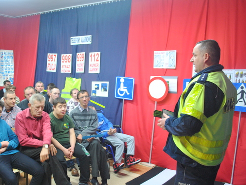 W poniedziałek 07 września br. w Środowiskowym Domu Samopomocy w Oleśnicy odbyło się spotkanie z funkcjonariuszami Policji st.asp. Jarosławem Czupryną oraz mł. asp. Eweliną Fiszbain, którzy przekazali informacje dotyczące: bezpiecznego korzystania z drogi, praw i obowiązków osób niepełnosprawnych będących uczestnikami ruchu drogowego. Zwieńczeniem spotkania było wręczenie każdemu uczestnikowi spotkania elementu odblaskowego koniecznego do bezpiecznego poruszania się po drogach.