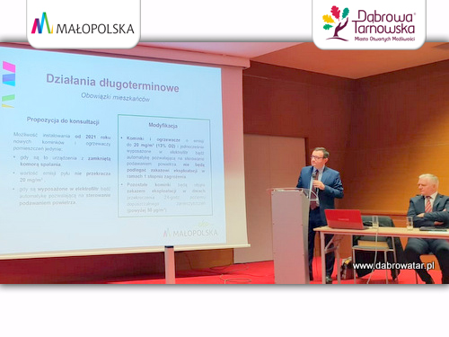 W poniedziałek 3 lutego br. przedstawiciele małopolskich samorządów spotkali się podczas Konferencji Forum Wójtów, Burmistrzów i Prezydentów Małopolski. Był wśród nich także burmistrz Dąbrowy Tarnowskiej Krzysztof Kaczmarski. W wydarzeniu uczestniczył wicepremier Jarosław Gowin, a władze województwa reprezentował wicemarszałek Tomasz Urynowicz. W swoim wystąpieniu wicemarszałek Tomasz Urynowicz przedstawił propozycje zapisów nowego Programu ochrony powietrza dla województwa małopolskiego. Wicemarszałek podkreślił, że walka ze smogiem jest naszą wspólną troską – każdego z nas. Dlatego kluczowa jest ścisła współpraca we wdrażaniu konkretnych działań na rzecz czystego powietrza w Małopolsce.