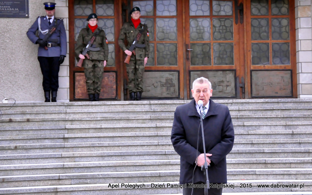 Apel został zorganizowany przez; samorząd gminny, samorząd powiatowy, dąbrowską parafię oraz Publiczne Gimnazjum Nr 2 im. Bohaterów Powiśla Dąbrowskiego. W uroczystości przed budynkiem Kaplicy Cmentarnej gdzie na ścianie frontowej umieszczona jest tablica pamiątkowa udział wzięli przedstawiciele samorządów lokalnych, proboszcz Parafii NMP Szkaplerznej w Dąbrowie Tarnowskiej Ks. Stansław Cyran, przedstawiciele organizacji społecznych, nauczyciele i uczniowie oraz Strzelcy JSWO 3059 Dąbrowa Tarnowska. Po powitaniu zebranych na apelu przez Zastępcę Burmistrza Dąbrowy Tarnowskiej - Stanisława Ryczka, montaż słowno-muzyczny przedstawili uczniowie Publicznego Gimnazjum nr 2 w Dąbrowie Tarnowskiej im. Bohaterów Powiśla Dąbrowskiego, pod kierunkiem Elżbiety Sytoń. Modlitwę w intencji zamordowanych na Wschodzie oraz wszystkich ofiar katastrofy smoleńskiej przewodniczył ks. Stanisław Cyran. Uroczystość zakończyło złożenie wiązanek kwiatów pod tablicą upamiętniającą dąbrowskie ofiary mordu w Katyniu. Wartę honorową przy dąbrowskiej tablicy katyńskiej wystawili policjanci z Powiatowej Komendy Policji w Dąbrowie Tarnowskiej oraz Strzelcy JSWO 3059 Dąbrowa Tarnowska.