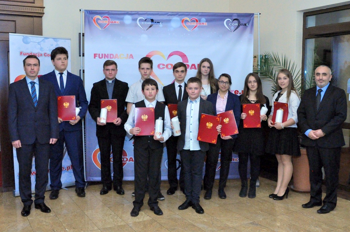 Fundacja Cordare ma charakter non profit, dlatego wszelkie darowizny są przeznaczane w całości na cele statutowe, czyli na pomoc potrzebującym. Gwarancją tego jest rezygnacja przez członków Zarządu i Rady z zatrudnienia w Fundacji oraz transparentne zarządzanie finansami. Głównym celem Fundacji jest przede wszystkim coroczne przyznawanie stypendiów najbardziej utalentowanym, potrzebującym pomocy finansowej uczniom szkół średnich oraz studentom. Naszą pomoc chcemy też w miarę możliwości kierować do takich beneficjentów jak np. hospicjum czy Dom Samotnej Matki, które to instytucje podejmują trudną służbę na rzecz potrzebujących. Podczas Balu wręczono pierwsze dziesięć stypendiów. – Siedmioro uczniów gimnazjum i szkół ponadgimnazjalnych otrzyma jednorazowo 2 tysiące złotych, a trzech studentów 3 tysiące złotych – mówi Jan Kiełbasa, wiceprezes fundacji. Stypendia zostały przyznane Stupendysci Cordere pl 2016 2 Balem charytatywnym wystartowała Fundacja Cordare – jak na razie – młodym z terenu Powiśla Dąbrowskiego. – Ale nie zamykamy się na innych młodych i zdolnych, mamy nadzieję coraz bardziej poszerzać swoją działalność charytatywną – mówi Robert Jachym, przewodniczący Rady Fundacji. Cordare wspomogło również dwie instytucje – Dom Samotnej Matki w Tarnowie oraz Hospicjum św. Brata Alberta w Dąbrowie Tarnowskiej. – Chcemy tym samym pokazać, że wspieramy potrzebującego człowieka wielowymiarowo, od początku jego życia, przez aktywność wieku szkolnego lub na progu dojrzałości, aż po starość – wyjaśnia Jan Kiełbasa.