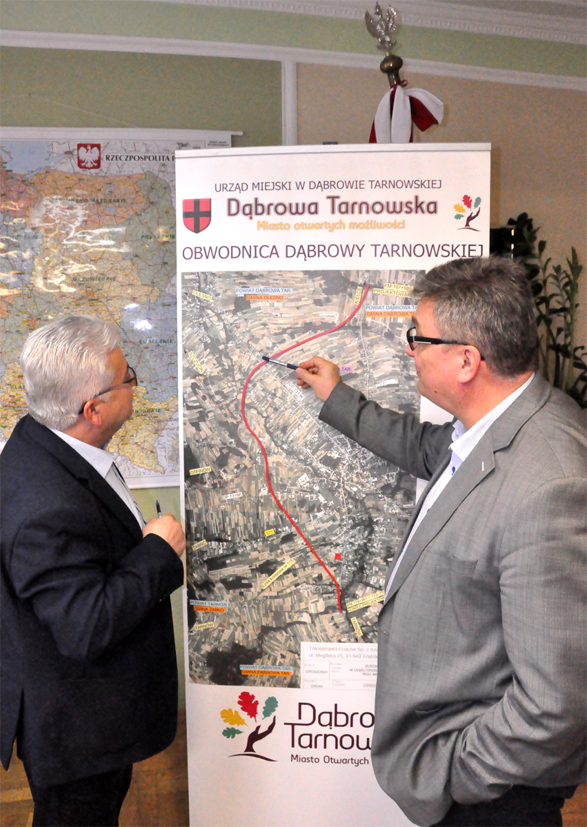 Burmistrz Dąbrowy Tarnowskiej Krzysztof Kaczmarski wraz mieszkańcami Dąbrowy Tarnowskiej wyraża wdzięczność Panu Tomaszowi Pałasińskiemu - Dyrektorowi Oddziału GDDKiA w Krakowie, za przychylność i pozytywne ustosunkowanie się do uwag dąbrowian, zaś Posłowi Krajewskiemu za interwencję w tej, jakże ważnej dla naszego miasta sprawie.