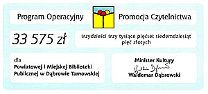 Burmistrz Dąbrowy Tarnowskiej Stanisław Początek i Dyrektor Miejskiej Biblioteki Publicznej Jadwiga Kusior przed dwoma miesiącami zwrócili się do Ministra Kultury o wsparcie resortu w zakupie książek do Biblioteki im. Marii Kozaczkowej. Przedstawiono wyniki pracy tej placówki, nakłady samorządu na remont budynku, pracę w środowisku. Wyniki uzyskiwane w Dąbrowie Tarnowskiej spotkały się z uznaniem Pana Ministra Waldemara Dąbrowskiego. Dowodem tego jest przyznanie dotacji w wysokości 33.575,00 zł na zakup książek i rozwój czytelnictwa.