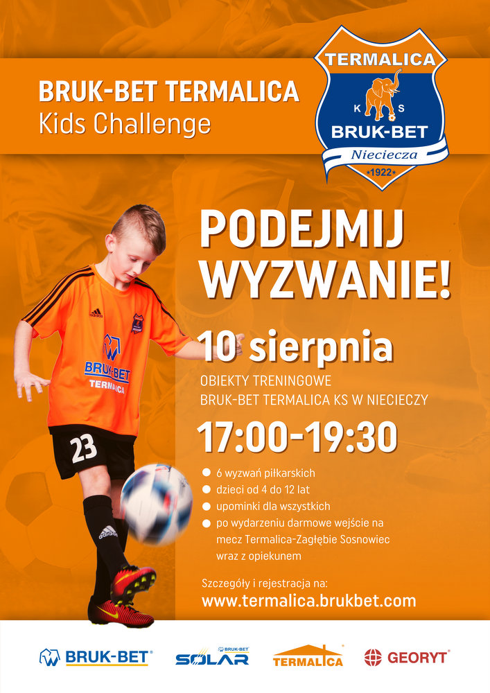 Festiwal Piłkarski – Bruk Bet Termalica Kids Challenge Organizator: Bruk Bet Termalica Nieciecza Data: 10 sierpnia, sobota