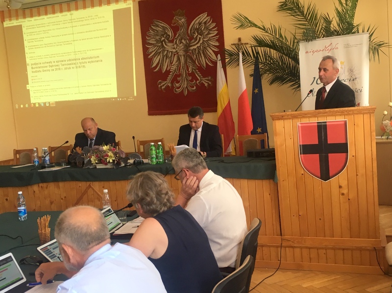 Do końca czerwca każda rada gminy ma obowiązek rozpatrzyć sprawozdanie z wykonania budżetu za poprzedni rok i udzielić lub też nie, absolutorium burmistrzowi. Od obecnej kadencji, zgodnie z wymogami znowelizowanej w ubiegłym roku ustawy o samorządzie gminnym Burmistrz ma także obowiązek przedstawienia raportu o stanie gminy za rok 2018. I to też miało miejsce na sesji Rady Miejskiej w Dąbrowie Tarnowskiej w dniu 26 czerwca 2019 r., gdzie przed przystąpieniem do udzielenia absolutorium Burmistrzowi Dąbrowy Tarnowskiej, radni wzięli udział w debacie nad raportem, który został przygotowany i przedstawiony przez Burmistrza Krzysztofa Kaczmarskiego. Raport o stanie gminy obejmuje podsumowanie działalności Burmistrza w poprzednim roku, a w szczególności realizację polityk, programów i strategii, oraz uchwał Rady Miejskiej. Jest jednocześnie obszernym zbiorem danych i analiz związanych z funkcjonowaniem Gminy Dąbrowa Tarnowska w takich obszarach, jak np.: gospodarka komunalna, gospodarka przestrzenna, ochrona środowiska, polityka społeczna, edukacja, kultura, sport i rekreacja, bezpieczeństwo publiczne i ochrona przeciwpożarowa.