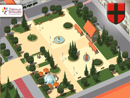 Przypominamy, że dla dąbrowskiego rynku opracowano ponad 10 lat temu projekt zagospodarowania, przewidujący m.in. utwardzenie znacznej jego części płytami kamiennymi i kostką imitującą stary bruk, budowę kawiarni w kształcie małej rotundy z parasolami, gdzie będzie można przysiąść, odpocząć i wypić kawę. Uwzględniając historyczną funkcję rynku przewidziano rzeźby z mosiądzu przedstawiające ludzi stojących przy studni, nabierających wodę i gawędzących, fontannę z "nosiwodą” oraz zaprzęg konny z wozem pełnym kwiatów. Dla przesłonięcia widoku zielonego bloku mieszkalnego, który architektonicznie raczej nie pasuje do zabudowy historycznej, zaplanowano lokalizację zadaszonego wejścia na rynek, które również może pełnić rolę sceny w czasie imprez okolicznościowych oraz stragany do sprzedaży pamiątek.