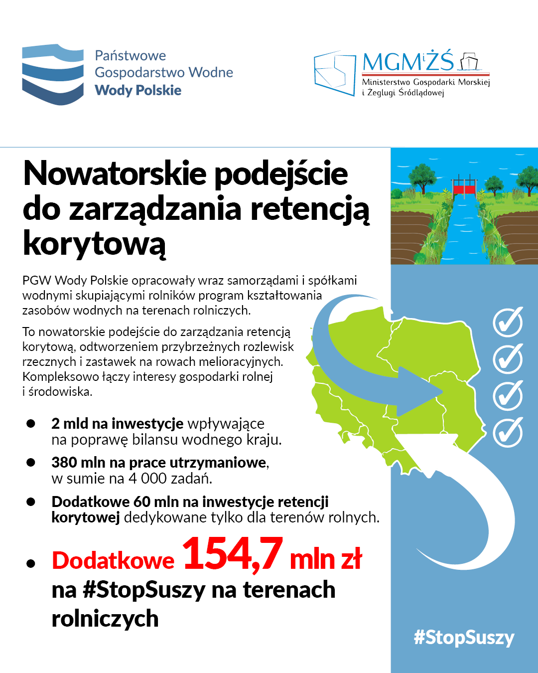 Bardziej obiecująco przedstawia się potencjalne uczestnictwo Gminy Dąbrowa Tarnowska w programie Stop Suszy, co również zakłada budowę zbiornika retencyjnego w sołectwie Żelazówka. Zgłoszenie to znajduje się w tabeli zadań w zakresie budowy i przebudowy urządzeń wodnych w celu zwiększania m.in. retencji i wspierania przeciwdziałania skutkom suszy - zadania wytypowane z Programu Planowanych Inwestycji Państwowego Gospodarstwa Wodnego Wody Polskie WP na lata 2021-2027 z perspektywą do 2030 r: http://wide-vision.pl/wp-content/uploads/2020/05/Projekt-PPSS_25052020.pdf