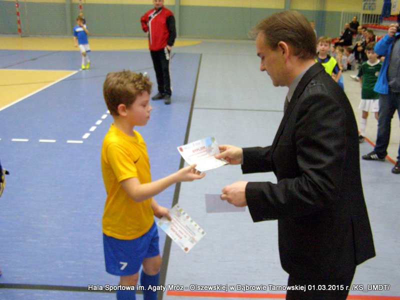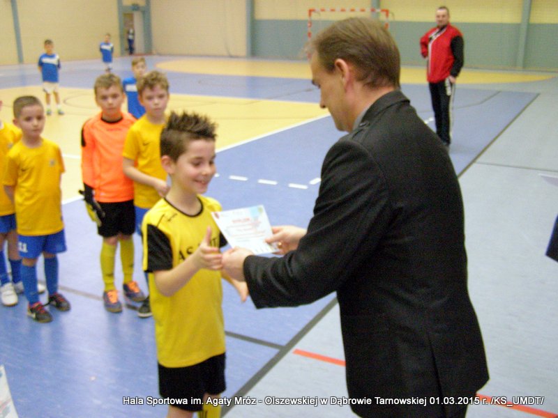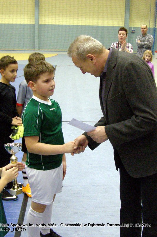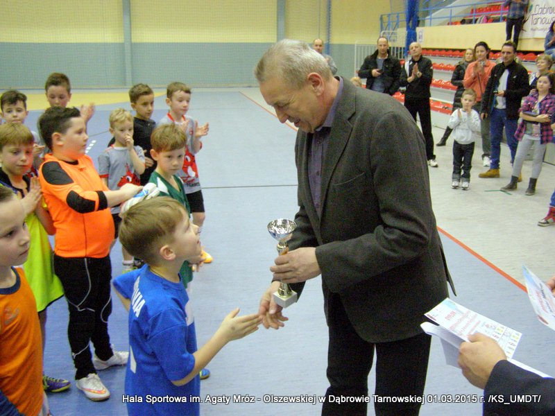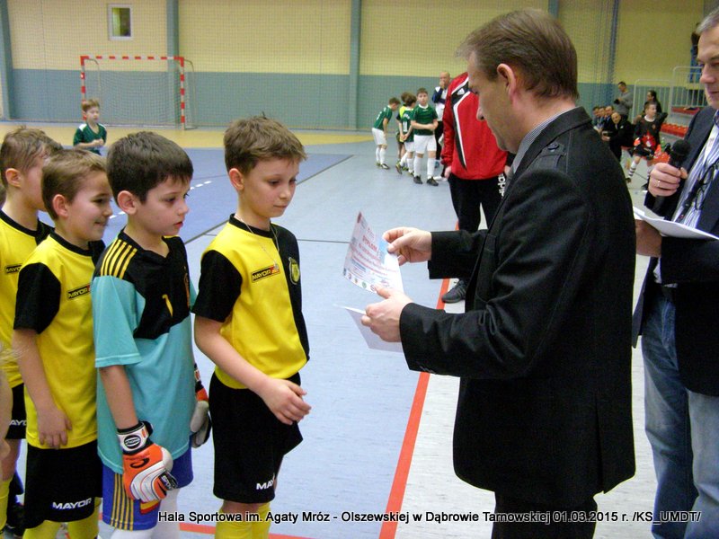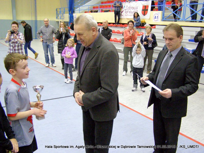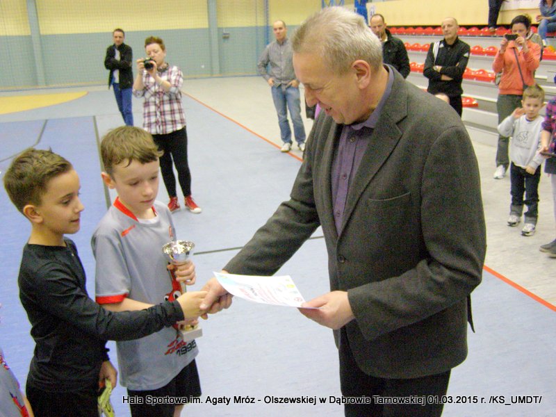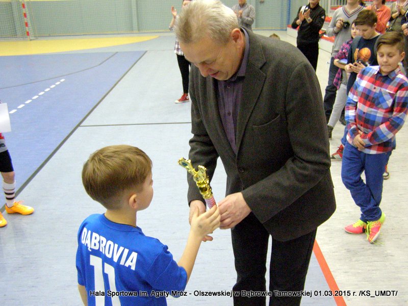 Klasyfikacja końcowa Dąbrowskiego Turnieju Żaków: I miejsce – Westovia Tarnów, w składzie: Mati Cytwa, Leszek Niewola, Jan Ciszewski, Piotr Półkoszek, Kacper Okoński, Kacper Jurek, Kacper Marszalik, Mariusz Pawłowski, Filip Golema, Dawid Słota, Paweł Kozyra, Max Chaim, Filip Marszalik. II miejsce – UKS Gryf Pleśna, w składzie: Filip Abram, Arkadiusz Goliński, Hubert Włodek, Teodor Szary, Bartosz Adwent, Bartłomiej Warchoł, Remigiusz Klich, Dawid Leśniak, Przemysław Kłósek, Mateusz Kłósek, Mikołaj Sukiennik, Kacper Truczyński. III miejsce – MLKS Dąbrovia, w składzie: Szymon Zbierzkowski, Karol Miodowski, Karol Stawarz, Wojciech Misiaszek, Bartosz Stawarz, Mateusz Szpotan, Kacper Pyzik, Adam Zych, Damian Ryczek.Po ostatnim pojedynku nadszedł czas na uroczystą ceremonię dekoracji. Wszystkie ekipy nagrodzone zostały pamiątkowymi dyplomami a drużyny z miejsc „medalowych” dodatkowo otrzymały okazałe puchary, które wręczał Stanisław Ryczek – Zastępca Burmistrza Dąbrowy Tarnowskiej w asyście Piotra Zająca – Prezesa MLKS Dąbrovia oraz Witola Reczka – kierownika Referatu Kultury Fizycznej i Sportu. Podczas rozgrywek wyłoniono również najlepszego bramkarza i najlepszego strzelca turnieju. Bramkarzem zawodów wybrano gracza drużyny Westovii Tarnów – Leszka Niewolę, natomiast królem strzelców został Adam Zych – zawodnik gospodarzy, MLKS Dąbrovia. Do indywidualnie nagrodzonych zawodników trafiły oryginalne statuetki. Organizatorzy turnieju kierują szczególne podziękowania do Państwa Bożeny i Mariusza Sokołowskich, którzy nieodpłatnie zapewnili zawodnikom słodkie przekąski.