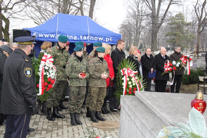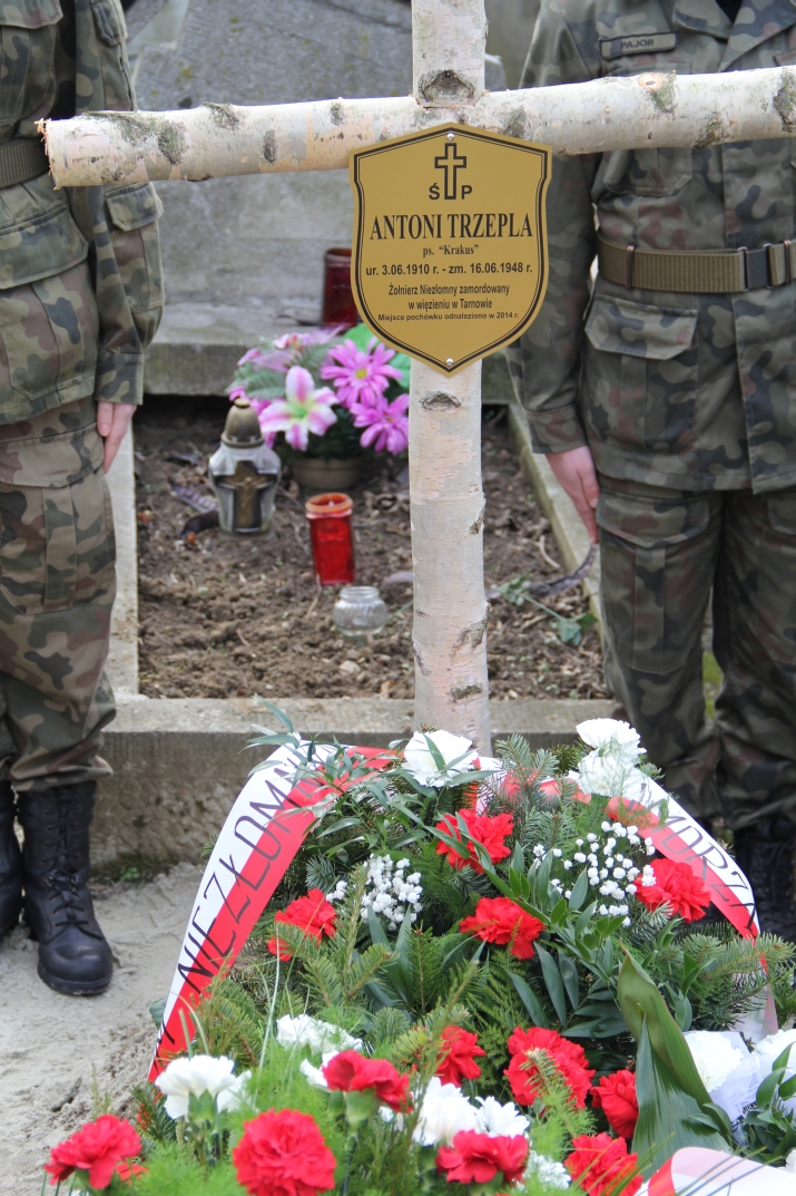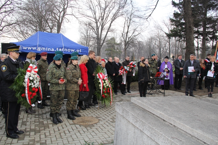 Uroczystości Narodowego Dnia Pamięci Żołnierzy Wyklętych tradycyjnie zostały zorganizowane także na Cmentarzu Komunalnym w Tarnowie – Krzyżu. W sobotę, 28 lutego oddano hołd żołnierzom z terenu naszej gminy oraz oznaczono brzozowymi krzyżami dwa niedawno odnalezione miejsca pochówku Niezłomnych. Przed południem z parkingu przed cmentarzem zgromadzeni przeszli w uroczystym przemarszu na miejsce spoczynku pomordowanych w kwaterze XII. Przemarsz prowadziły poczty sztandarowe i strzelcy z jednostek strzeleckich „Strzelec” z Brzeska i Tarnowa oraz Dąbrowy Tarnowskiej, którzy wcześniej wystawili warty honorowe przy mogiłach pomordowanych. Potem nastąpiło oznaczenie brzozowym krzyżem ostatnio odnalezionego miejsca pochówku Antoniego Trzepli ps. „Krakus”, w czasie okupacji żołnierza oddziału dywersyjnego AK, a po wojnie członka Rady Zrzeszenia „WiN” w Brzesku. W związku z tym, że na szczątkach drugiego z odnalezionych żołnierzy – urodzonego w Radgoszczy Jana Kmiecia – w latach siedemdziesiątych został wybudowany betonowy grób dla innej osoby, organizatorzy usypali ziemny kopiec obok tego grobu, na miejscu, gdzie dotychczas nie było żadnego pochówku. Po zakończeniu modlitwy zgromadzeni złożyli kwiaty i zapalili znicze na grobie niezłomnych; Mieczysława Cielochy i Stanisława Kiełbasy oraz Antoniego Trzepli i Jana Kmiecia. W uroczystościach udział wzięli: bohaterowie tamtych wydarzeń; pułkownik Zdzisław Baszak, który osobiście znał Antoniego Trzeplę, a także podkomendny Mieczysława Cielochy z Woli Rzędzińskiej Jan Sitko – więzień okresu stalinowskiego.