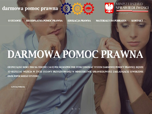 Więcej informacji na temat darmowej pomocy prawnej na stronie: http://darmowapomocprawna.ms.gov.pl/pl . DPP MS GOV PL Od stycznia 2016 r. w całej Polsce ruszy darmowa pomoc prawna!