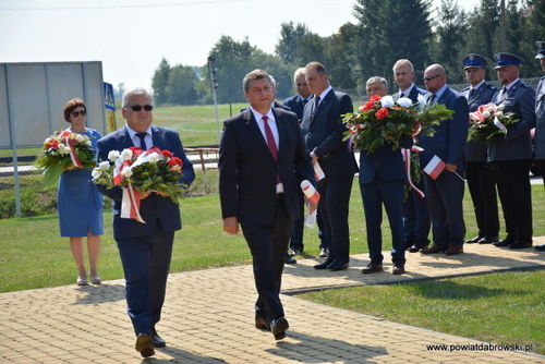 Po odśpiewaniu Mazurka Dąbrowskiego okolicznościowe przemówienia wygłosili: Wójt Gminy Gręboszów Krzysztof Gil, Poseł na Sejm RP Wiesław Krajewski, Starosta Dąbrowski Lesław Wieczorek, a także były ambasador RP Zenon Kosiniak-Kamysz i Radny Rady Powiatu Dąbrowskiego Bogdan Bigos. Rys historyczny wydarzeń wrześniowych sprzed 80 lat przedstawił Włodzimierz Piasecki, nauczyciel historii z Zespołu Szkół Ponadgimnazjalnych nr 2 w Dąbrowie Tarnowskiej, a zarazem przedstawiciel Związku Dąbrowiaków.