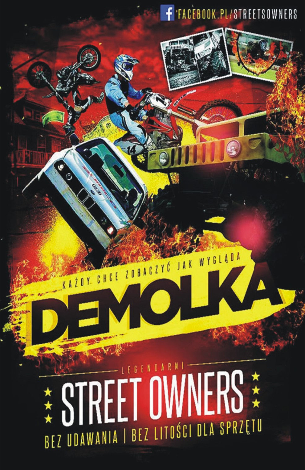 Demolka STREET OWNERS plakat Już dzisiaj kaskaderska DEMOLKA   Street Owners   na dąbrowskim stadionie miejskim