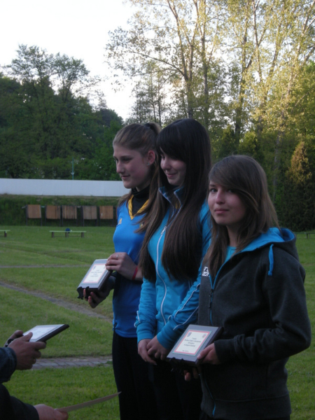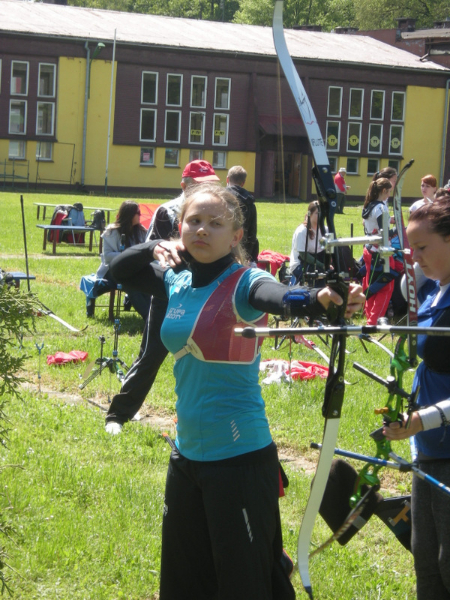 Młodziczki Starsze: 6m. Gabriela Kłos-Kufel Młodziczki: 5m. Karolina Kozaczka Dzieci – dziewczynki: 3m. Julia Pudełko Dzieci – chłopcy: 11m. Arkadiusz Armatys 17m. Grzegorz Szwarcenberg Dzieci młodsze – dziewczynki: 4m. Emilia Pudełko 8m. Weronika Szwarcenberg 9m. Aleksandra Dziiurba Dzieci młodsze – chłopcy: 3m. Adriano Rossini 5m. Bartosz Dziurba 7m. Nikodem Głowacz 8m. Kamil BurgielNa początku maja nasze reprezentantki, występujące także w Reprezentacji Polski Katarzyna Mickiewicz oraz Agata Bulwa startując na III Grand Prix Kadry Narodowej w Legnicy. Po trzech dniach rywalizacji pomiędzy kadrowiczami przystąpiono do walki w III rundzie Ekstraklasy Łuczniczej. W niedzielę do Agaty i Katarzyna dołączyły juniorki Anna Forgiel oraz Lidia Milas. W poprzednich dwóch rundach dąbrowianki zajmowały trzecie i czwarte miejsce. W tej rundzie po niezwykle zaciętej walce, dopiero baraż o 2 miejsce pomiędzy trzema klubami, rozstrzygnął kolejność na podium. I to właśnie nasza drużyna w tej dogrywce wyszła zwycięsko pokonując Grot Zabierzów oraz Obuwnik Prudnik. Lokata ta daje „Dąbrovii” awans na trzecie miejsce w klasyfikacji generalnej Ekstraklasy Łuczniczej. Pozostały jeszcze 2 rundy cyklu tych zawodów; z czego najbliższe Grand Prix KN oraz Ekstraklasa rozgrywane będą na stadionie miejskim w Dąbrowie Tarnowskiej od 30 maja do 1 czerwca.