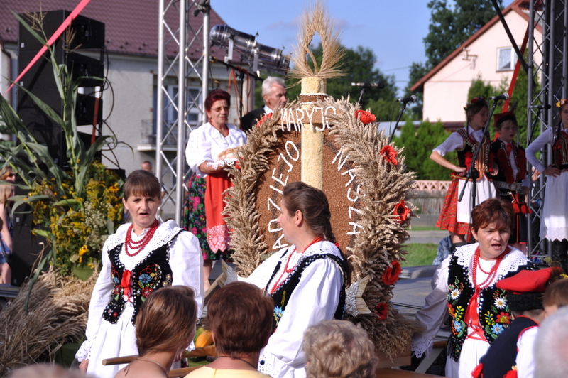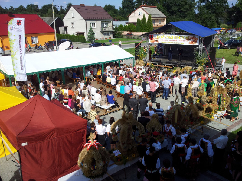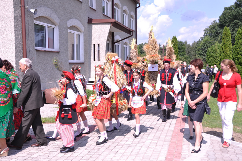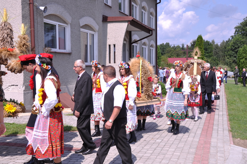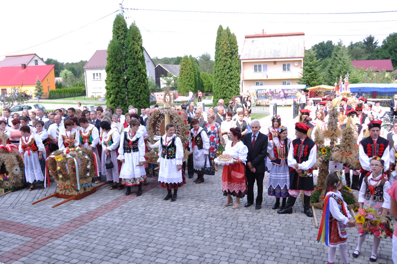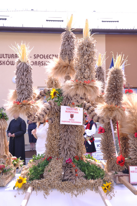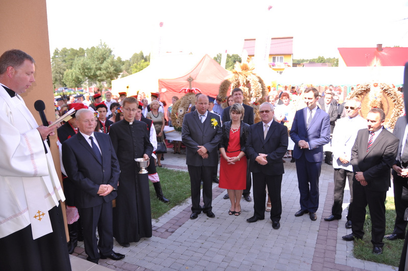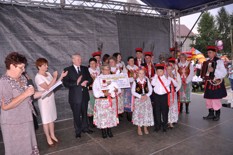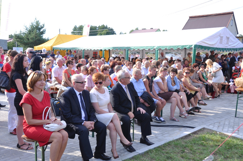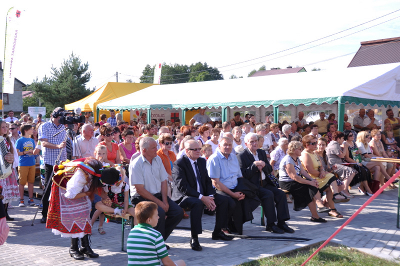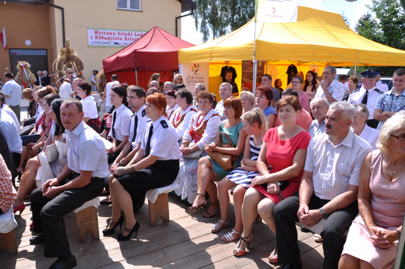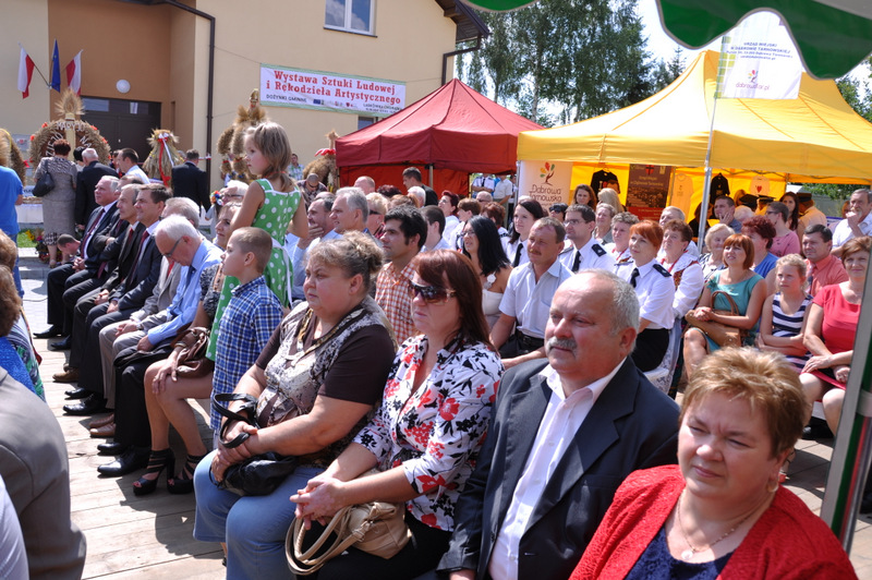 Po otwarciu budynku i poświęceniu, z częścią artystyczną wystąpili uczniowie miejscowej Szkoły Podstawowej, którą kieruje Dyrektor Teresa Dąbrowa. Później rozpoczęła się prezentacja konkursowa wieńców i ich “ośpiewanie“. Do konkursu przystąpiło 10 sołectw. Nie zdołały przygotować wieńców sołectwa; Smęgorzów i Gruszów Mały. Wyniki osiągane w konkursach oceniała komisja konkursowa w składzie; Wanda Chlastawa- Dyrektor Domu Malarek w Zalipiu, Jadwiga Kusior – Dyrektor Miejskiej Biblioteki Publicznej, Anna Witowska z Referatu Promocji Urzędu Miejskiego i Stanisław Stroński – Dąbrowski Dom Kultury. Po prezentacji wszystkich delegacji, komisja udała się na obrady a przed liczną publicznością wystąpił zespół “Markowianie“ z Markowej koło Łańcuta. Cały czas w trakcie uroczystości uczestnicy mieli możliwość zwiedzania wystawy rękodzieła artystycznego i ludowego. To przedsięwzięcie uzyskało dofinansowanie z Lokalnej Grupy działania PROWENT w Mielcu w ramach wygranego przez Dąbrowski Dom Kultury konkursu “małych projektów”. Małopolski Ośrodek Doradztwa Rolniczego – Zespół Powiatowy prezentował najnowsze odmiany ziemniaków jadalnych.