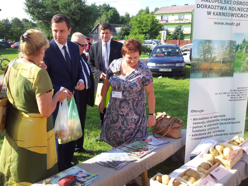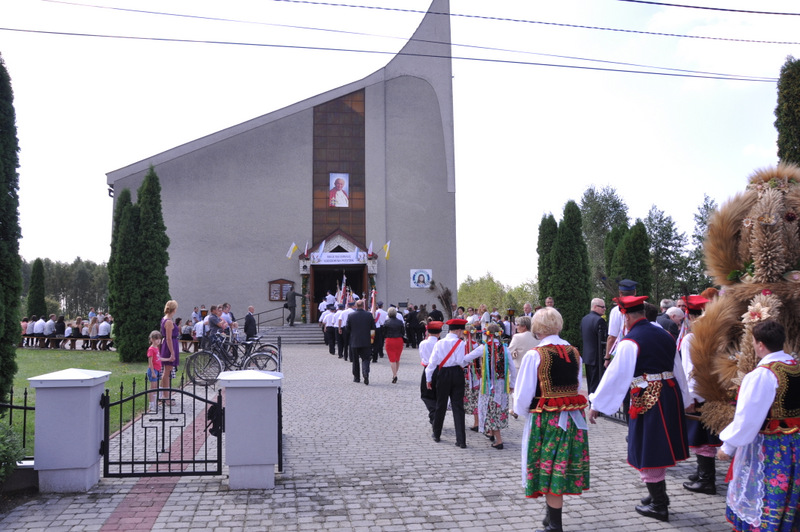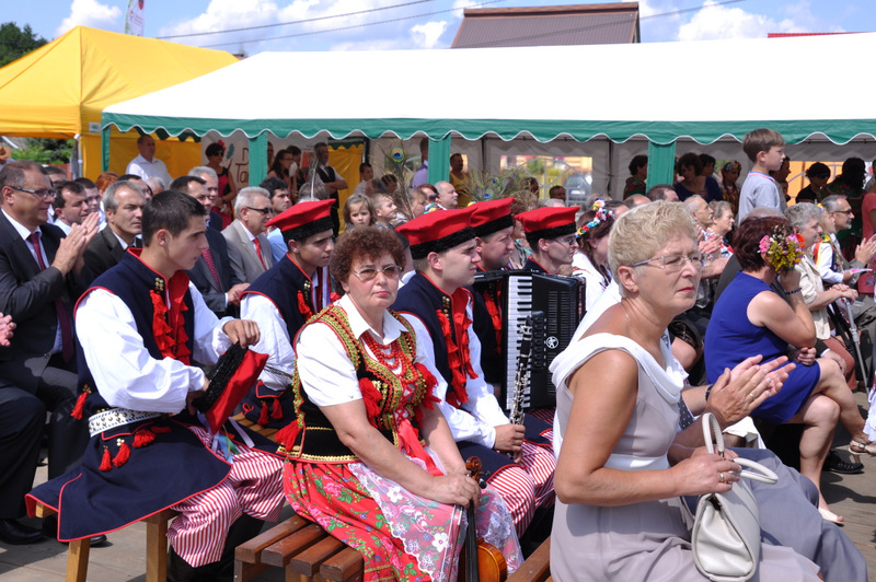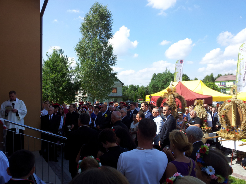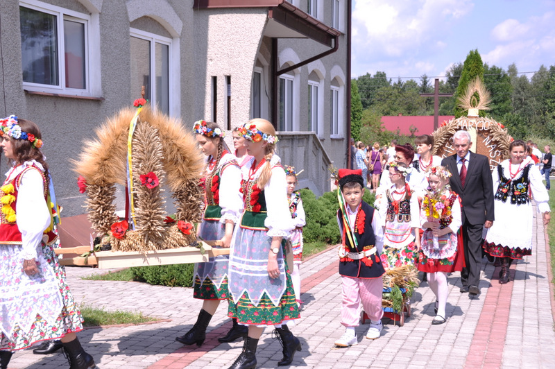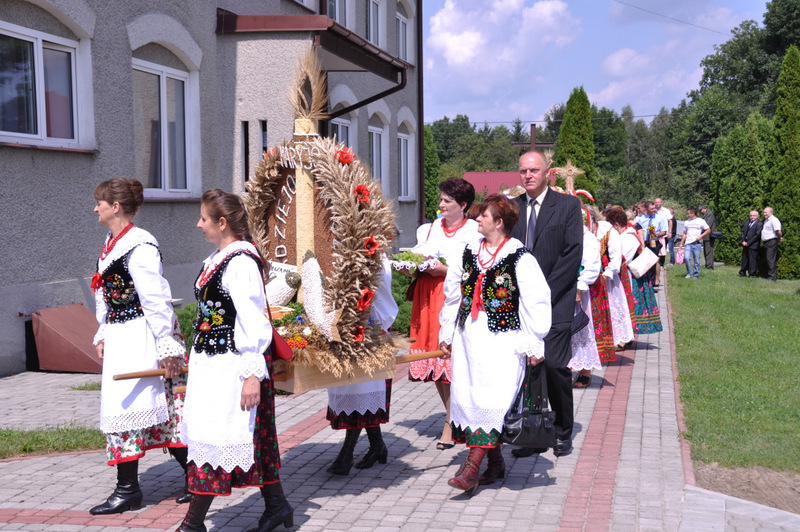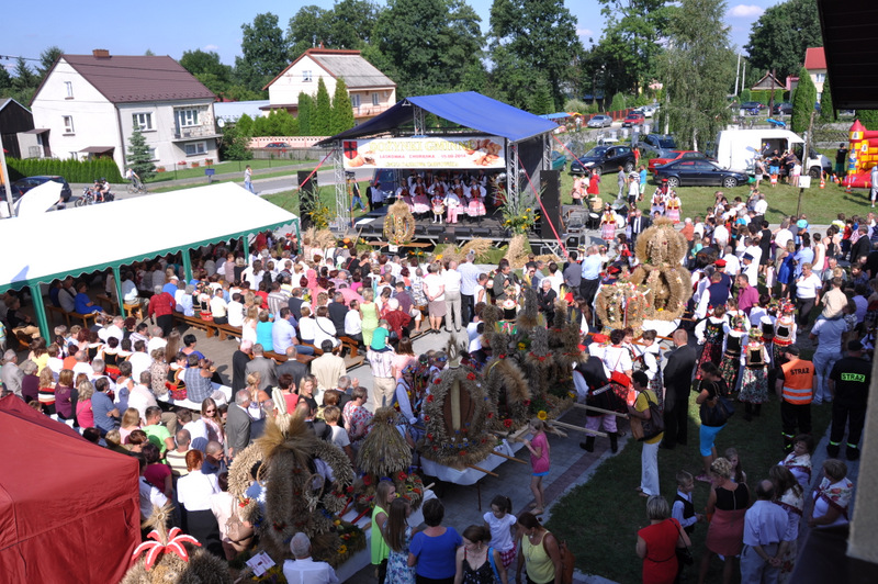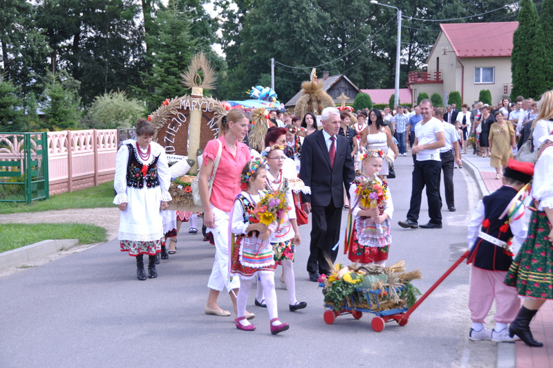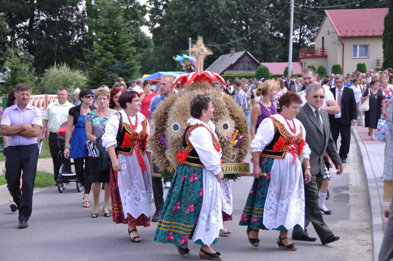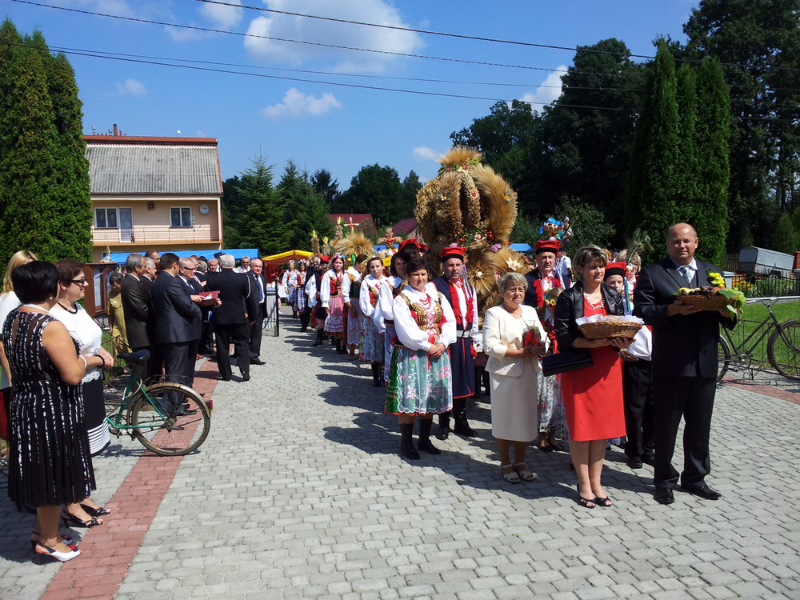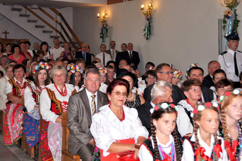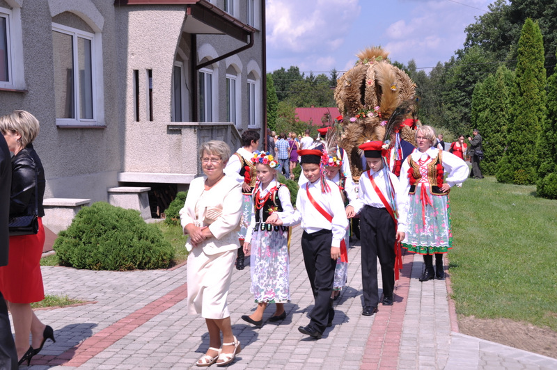 Po otwarciu budynku i poświęceniu, z częścią artystyczną wystąpili uczniowie miejscowej Szkoły Podstawowej, którą kieruje Dyrektor Teresa Dąbrowa. Później rozpoczęła się prezentacja konkursowa wieńców i ich “ośpiewanie“. Do konkursu przystąpiło 10 sołectw. Nie zdołały przygotować wieńców sołectwa; Smęgorzów i Gruszów Mały. Wyniki osiągane w konkursach oceniała komisja konkursowa w składzie; Wanda Chlastawa- Dyrektor Domu Malarek w Zalipiu, Jadwiga Kusior – Dyrektor Miejskiej Biblioteki Publicznej, Anna Witowska z Referatu Promocji Urzędu Miejskiego i Stanisław Stroński – Dąbrowski Dom Kultury. Po prezentacji wszystkich delegacji, komisja udała się na obrady a przed liczną publicznością wystąpił zespół “Markowianie“ z Markowej koło Łańcuta. Cały czas w trakcie uroczystości uczestnicy mieli możliwość zwiedzania wystawy rękodzieła artystycznego i ludowego. To przedsięwzięcie uzyskało dofinansowanie z Lokalnej Grupy działania PROWENT w Mielcu w ramach wygranego przez Dąbrowski Dom Kultury konkursu “małych projektów”. Małopolski Ośrodek Doradztwa Rolniczego – Zespół Powiatowy prezentował najnowsze odmiany ziemniaków jadalnych.