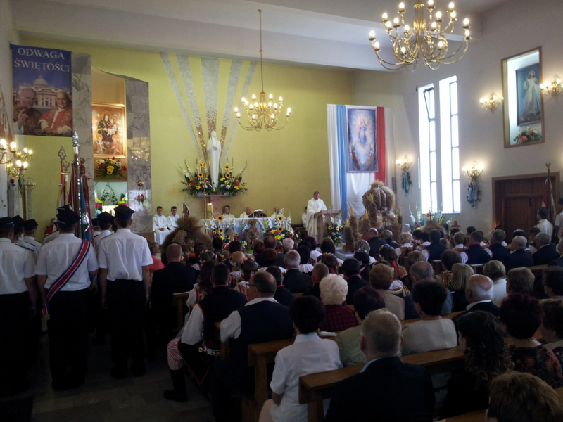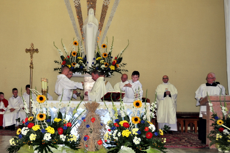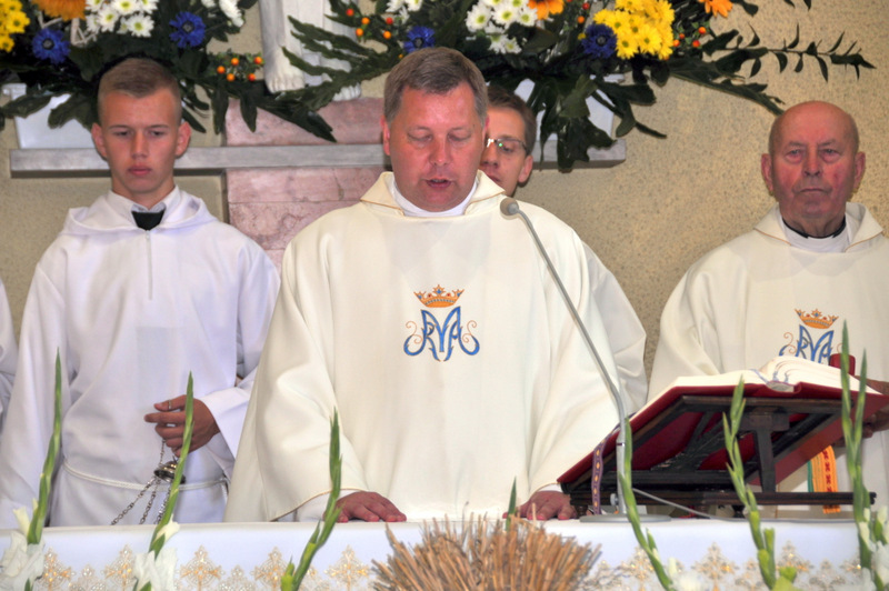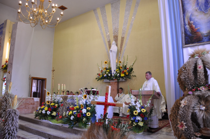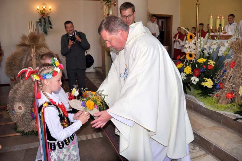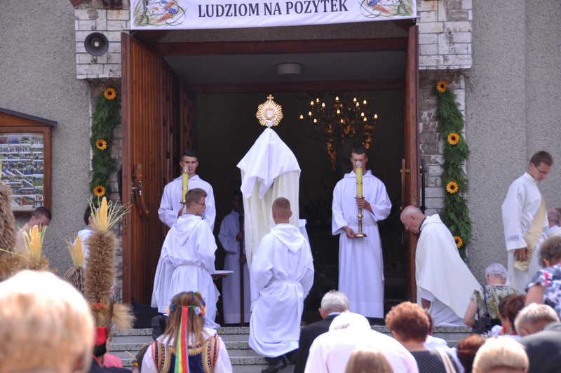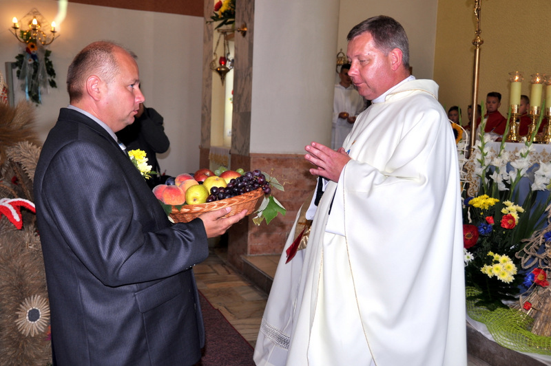 W swoim przemówieniu Burmistrz Początek powiedział m.in.: “ Dożynki to czas dziękczynienia Bogu za plony. Wszyscy z szacunkiem i uznaniem myślimy o naszych żywicielach, polskich rolnikach, których ciężkiej pracy zawdzięczamy, że na naszych stołach jest chleb. Dziękuję wszystkim rolnikom za ich trud i poświęcenie i za dbałość o gospodarstwa oraz środowisko naturalne. W tym roku plony są dobre, ale trudno było je zebrać bo częste i obfite deszcze opóźniały wjazd kombajnów na pola. Zdarzają się jeszcze pola, na których nie można było zebrać zbóż do tej pory. Serce się raduje gdy widzimy przepiękne wieńce, te tradycyjne i te współczesne. To prawdziwy festiwal pomysłów, to kunsztowne ich wykonanie. Niektóre delegacje przygotowały obrzęd “ ośpiewania wieńca “.