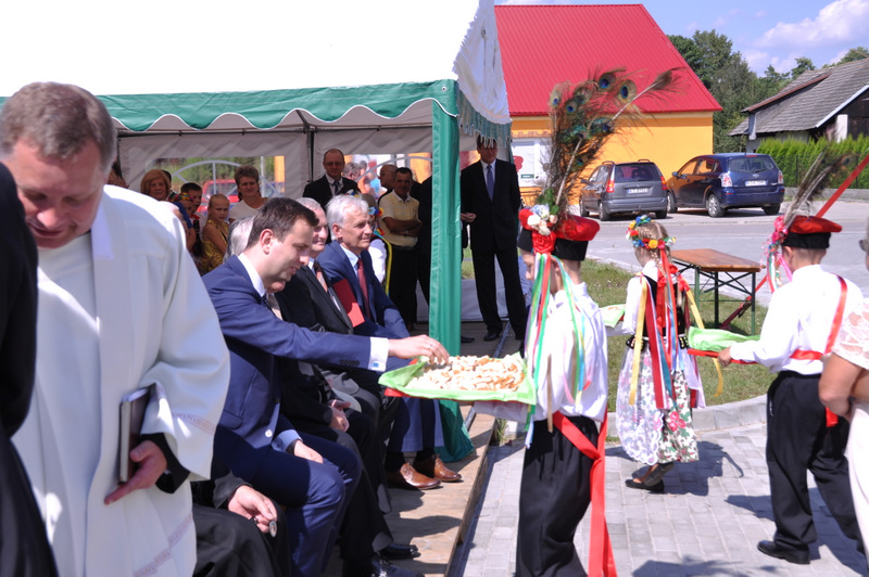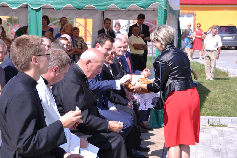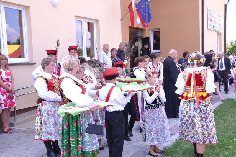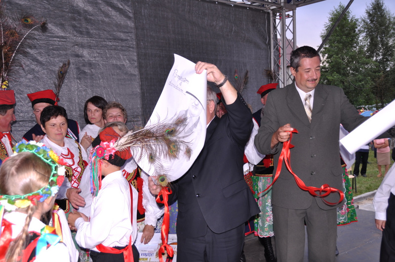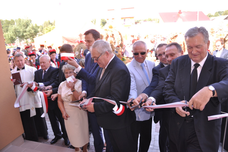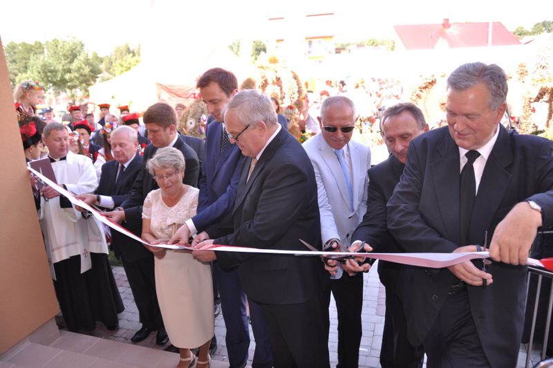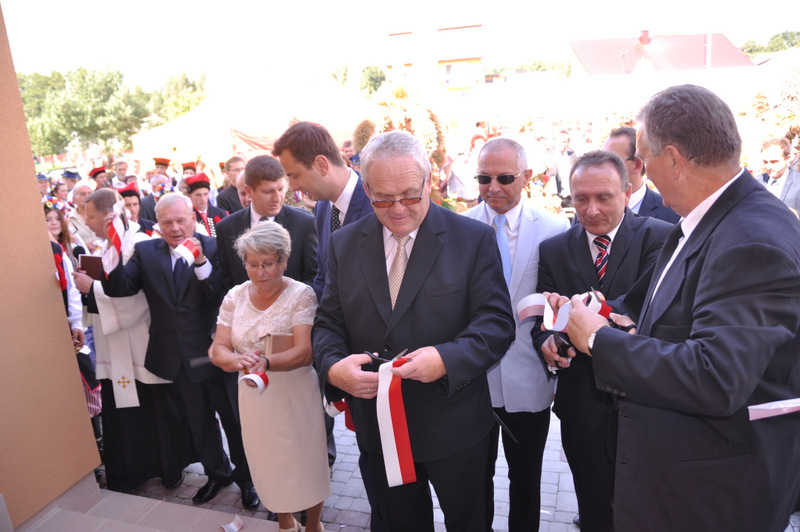 Po przemówieniu nastąpiło przecięcie wstęgi i poświęcenie obiektu i jego zwiedzanie. Gospodarz gminy do uroczystego aktu przecięcia wstęgi zaprosił m.in. Ministra Pracy i Polityki Społecznej, parlamentarzystów, wicestarostę, przewodniczącego Rady Miejskiej.