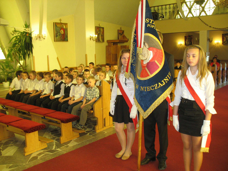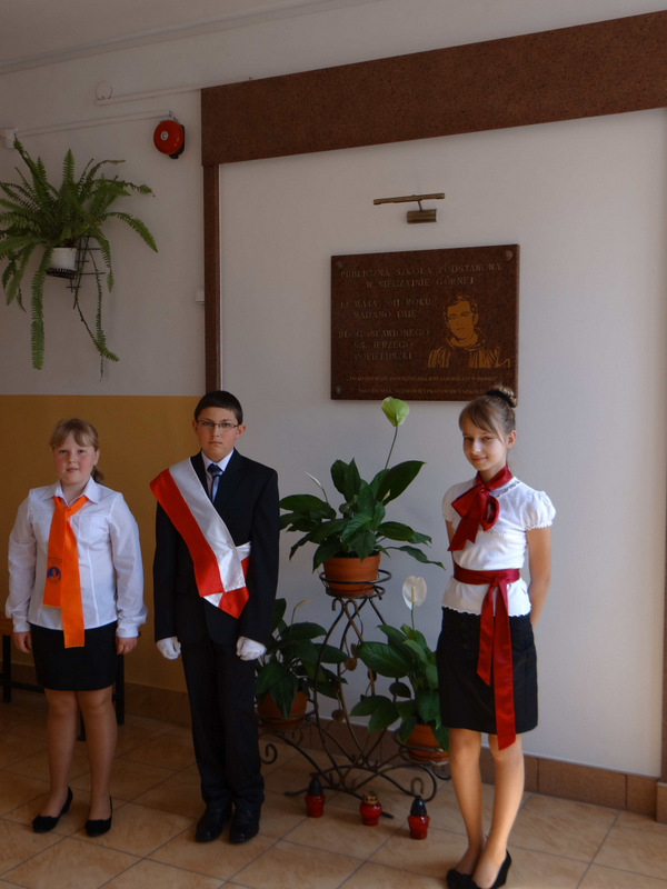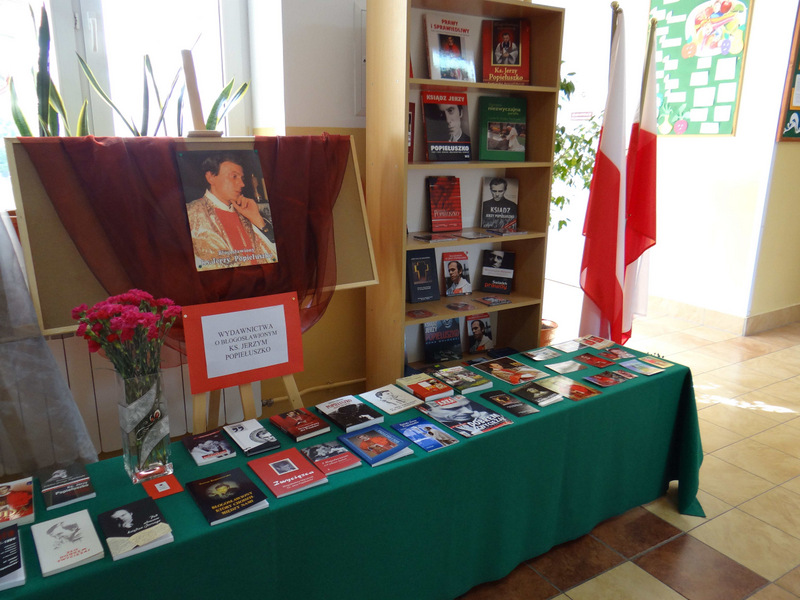 Na korytarzu szkolnym można było podziwiać dwie wystawy: fotografii wykonanych podczas wycieczki do sanktuarium Bł. Ks. Popiełuszki w Warszawie (wystawę przygotowała p. Bernadeta Pabian) oraz publikacji dotyczących Patrona (książki, czasopisma, płyty CD, obrazki, relikwie drugiego stopnia, plakaty) ze zbiorów p. I. Klich. Przygotowanie Dnia Patrona było możliwe dzięki zaangażowaniu całego grona pedagogicznego. W pamięci społeczności szkolnej zostało niełatwe przesłanie księdza Jerzego, które najmocniej wybrzmiało podczas uroczystości: „Mamy wypowiadać prawdę, gdy inni milczą. Wyrażać miłość i szacunek, gdy inni sieją nienawiść. Zamilknąć, gdy inni mówią. Modlić się, gdy inni przeklinają. Pomóc, gdy inni nie chcą tego czynić. Przebaczyć, gdy inni tego nie potrafią. Cieszyć się życiem, gdy inni je lekceważą”.
