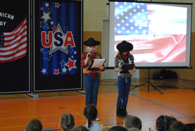 Podczas apelu uczennice klasy 6a, Justyna Kłos-Kufel i Aleksandra Sołtys, przedstawiły prezentację multimedialną, która zajęła pierwsze miejsce w konkursie „Polonia w Stanach Zjednoczonych”, uczeń klasy 5a, Maksymilian Mol, wykonał utwór „Hallelujah”, zaś członkowie świetlicy szkolnej pod kierunkiem p. Jadwigi Miś i p. Małgorzaty Gawlik zaprezentowali taniec amerykański. Na zakończenie chór szkolny wykonał utwór „My Homeland Lies Over the Ocean”, którego tekst został napisany przez p. Monikę Guzik-Skirzyńską. Wszystkie występy były dwujęzyczne, a nad poprawnością językową czuwały p. Katarzyna Pikul i p. Ewa Kmieć.