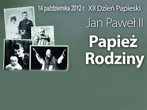 XII Dzień Papieski, który świętujemy 14 października, upływa pod hasłem Jan Paweł II – Papież Rodziny. Jest to okazja do podkreślenia szczególnego miejsca jakie zajmowały małżeństwo i rodzina w nauczaniu ks. Karola Wojtyły, późniejszego arcybiskupa Krakowa, wreszcie Papieża. Troska o rodzinę, wyrażana w dokumentach Jana Pawta II wiązała się przede wszystkim z uznaniem jej za początek i podstawę życia indywidualnego i społecznego każdego człowieka. Ojciec Święty wpisywał rodzinę w dobro wspólne ludzkości.