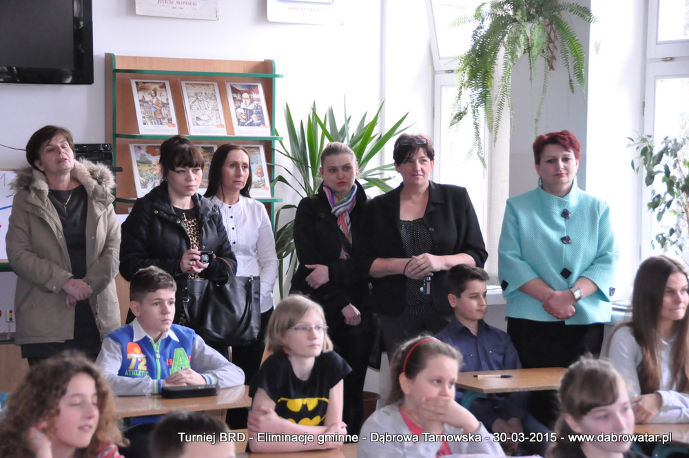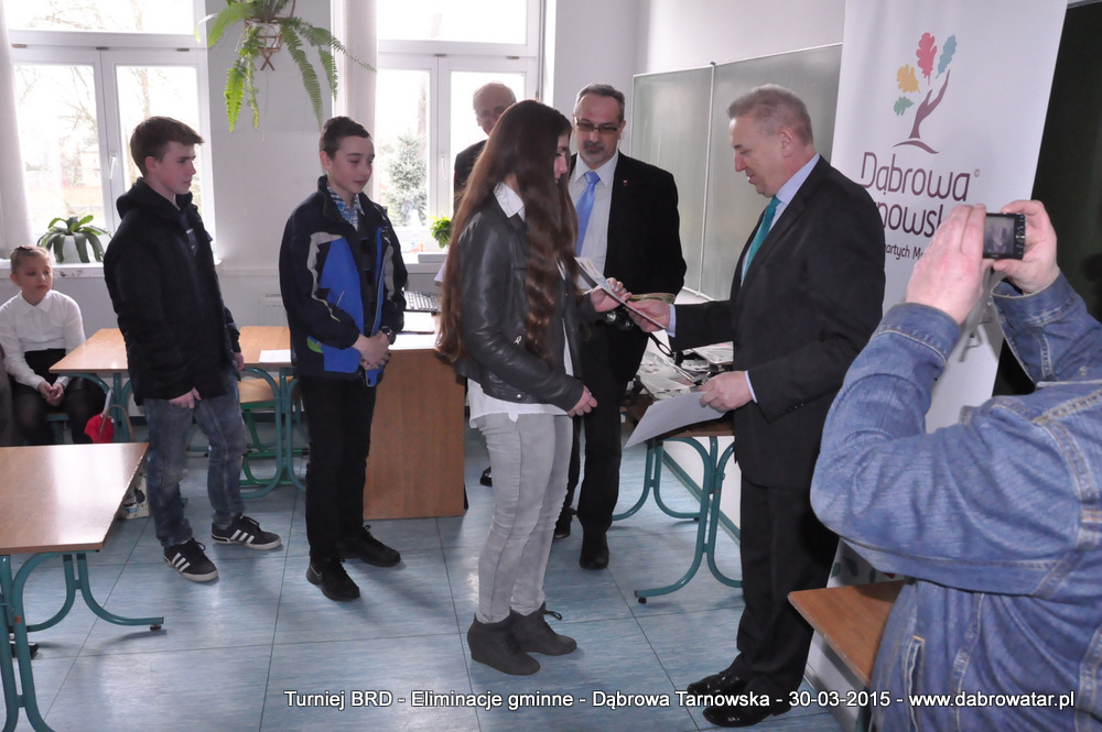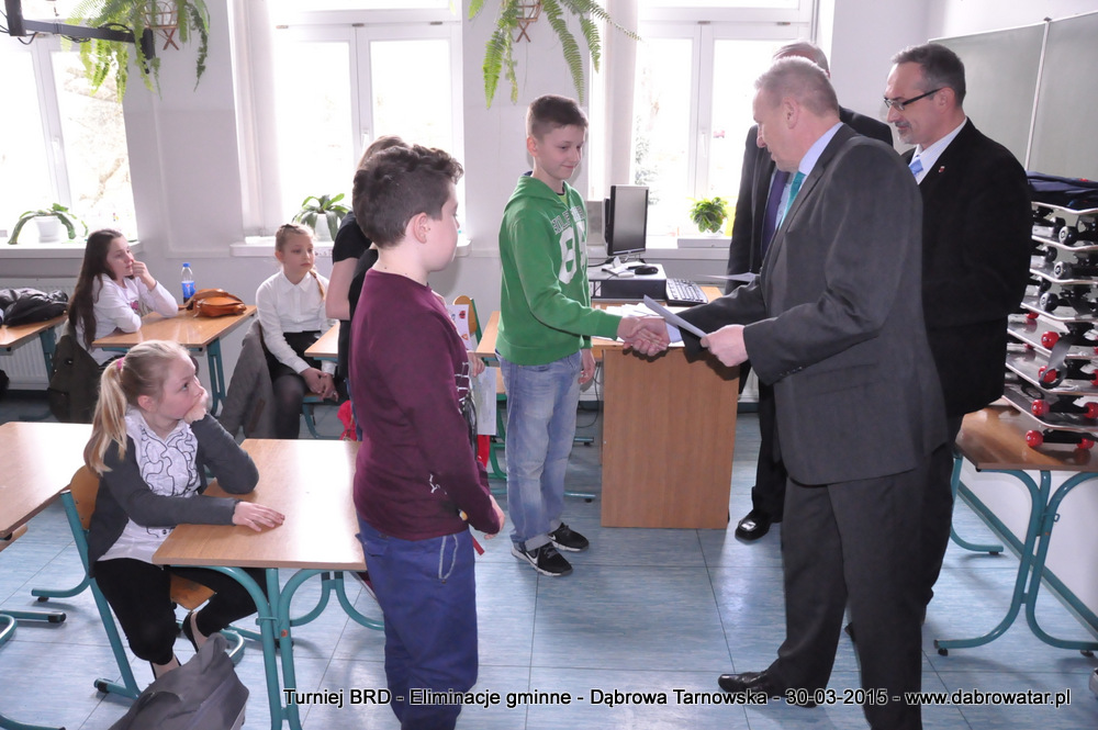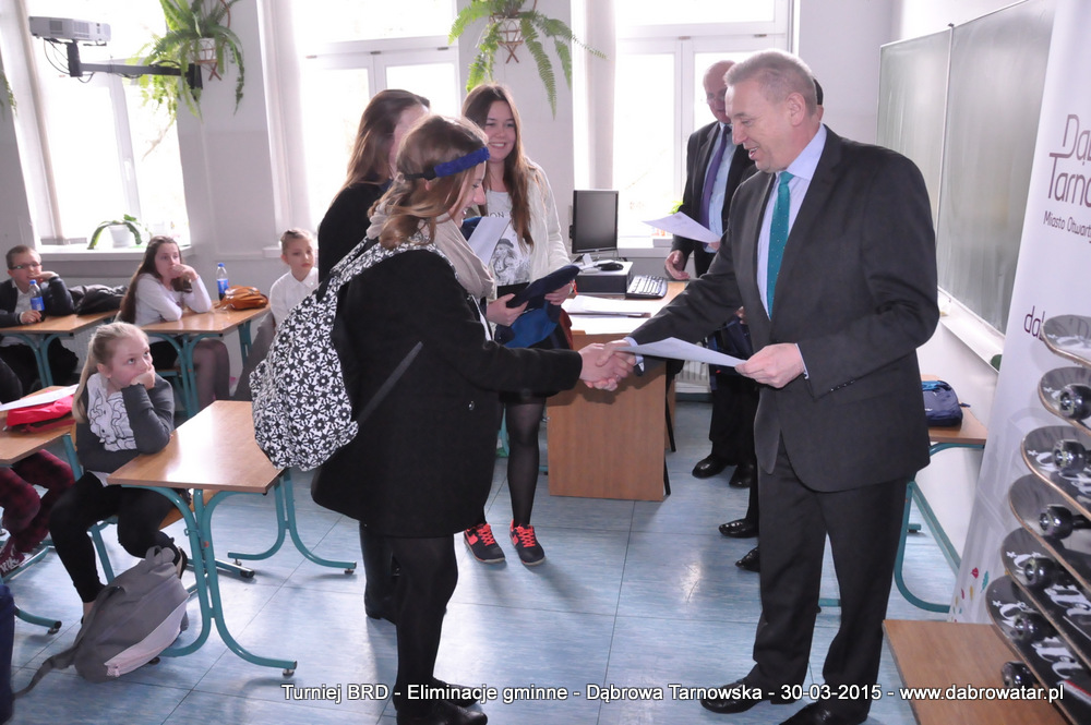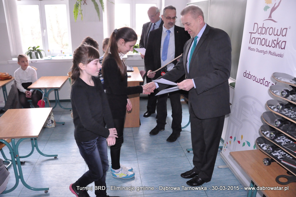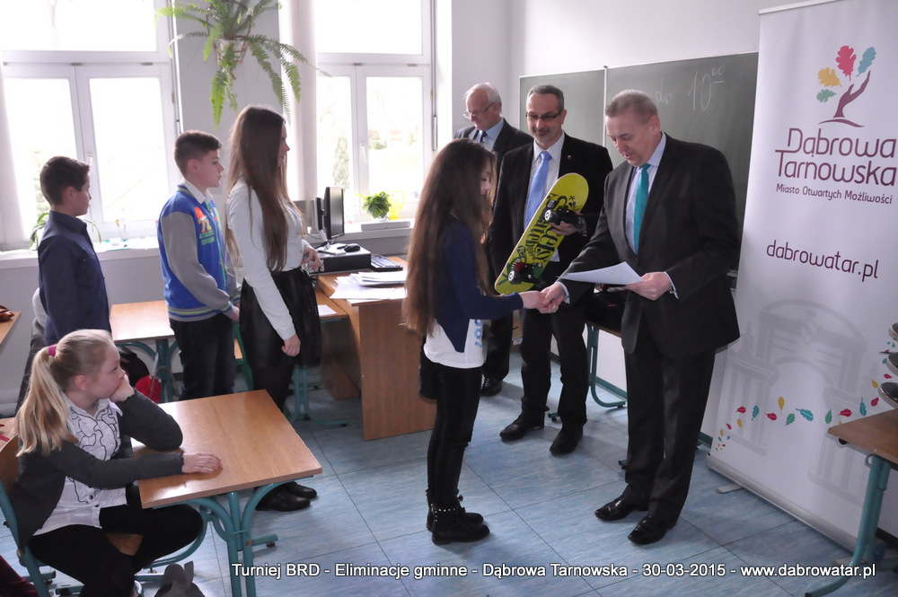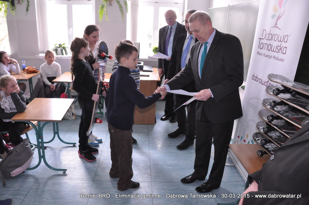 Jak co roku w marcu wśród uczniów i uczennic szkół podstawowych i gimnazjów w całej Polsce rozpoczyna się rywalizacja w Ogólnopolskim Turnieju Wiedzy Bezpieczeństwa w Ruchu Drogowym. Eliminacje gminne tegorocznej edycji turnieju dla szkół podstawowych i gimnazjalnych z terenu gminy Dąbrowa Tarnowska odbyły się 30 marca 2015 r. Również jak co roku, gospodarzem była w Publiczna Szkole Podstawowej Nr 1 im. Jana Pawła II w Dąbrowie Tarnowskiej. Do rywalizacji przystąpili uczniowie z siedmiu szkół podstawowych i trzech gimnazjów Gminy Dąbrowa Tarnowska.