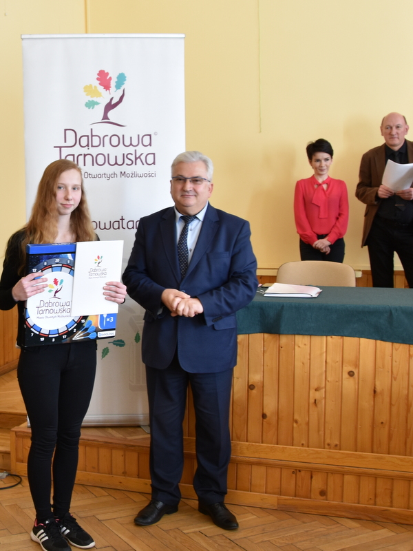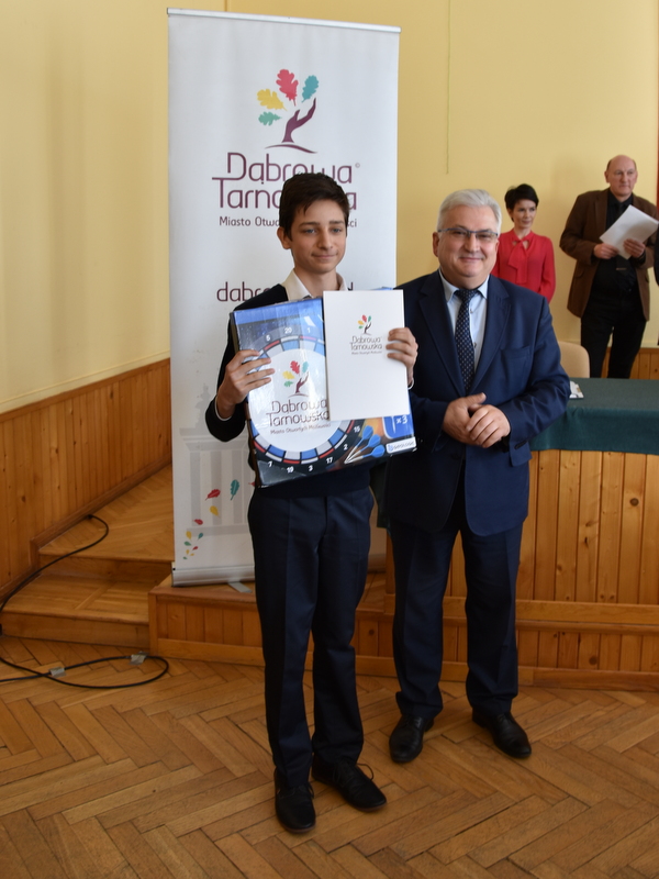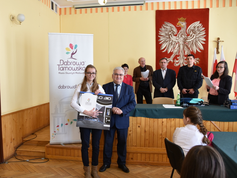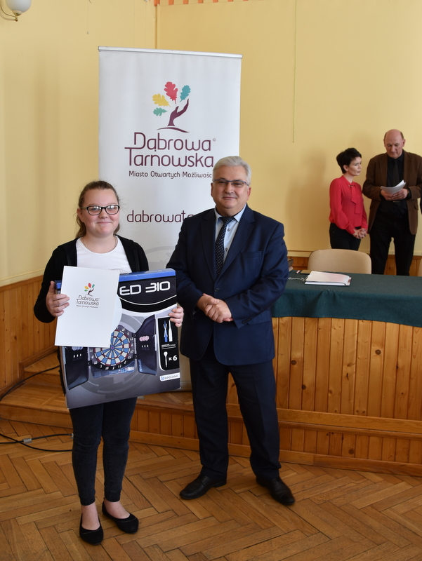 Do eliminacji powiatowych, które odbędą się w dniu 5.04.2019 o godz. 10:00 w Centrum Polonii w Brniu, zakwalifikowano po dwóch zawodników w obu kategoriach. Nagrody dla zwycięzców: zestawy gry w darta, plecaki i torby sportowe, ufundował i wręczył Burmistrz Dąbrowy Tarnowskiej mgr Krzysztof Kaczmarski. Burmistrz podsumował konkurs, podziękował uczestnikom i ich opiekunom za udział i życzył zwycięzcom godnego reprezentowania naszej gminy w eliminacjach powiatowych.