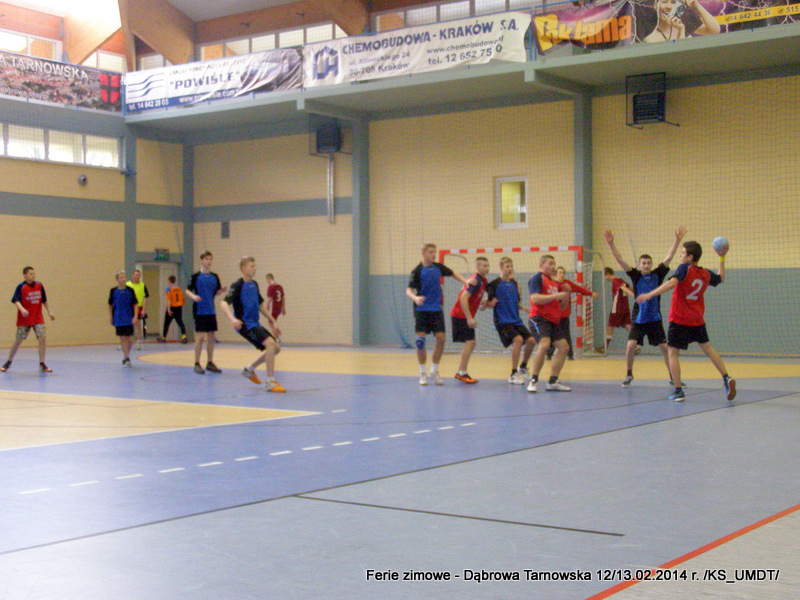 W Dąbrowie Tarnowskiej trwają w najlepsze „Ferie Zimowe 2014 na sportowo”. Każdego dnia olbrzymie rzesze zawodników uczestniczą w rozgrywkach organizowanych przez Gminę Dąbrowa Tarnowska na terenie miejskich obiektów sportowych. Miniona środa i czwartek upłynęły pod znakiem rozgrywek w piłkę nożną i piłkę ręczną. Piłkarska rywalizacja przyniosła zwycięstwo drużynie FC Porto w składzie: Ptak Daniel, Cygan Piotr, Mikos Kamil, Ciemieniowski Dominik, Wajda Kamil, Ogorzelec Mateusz, Kogut Damian. Zmagania szczypiornistów zwyciężyła drużyna Strażaka Karsy w składzie: Przemysław Gil, Dominik Majocha, Kamil Borek, Paweł Woźniak, Maciek Kowynia, Adrian Morawiec, Andrzej Badocha, Adrian Kaczówka, Alan Ciombor, Wojtek Kochańczyk. Natomiast w ramach mini-turnieju Uczniowskich Klubów Sportowych pozycję lidera zdobyło Gimnazjum Przecław I.