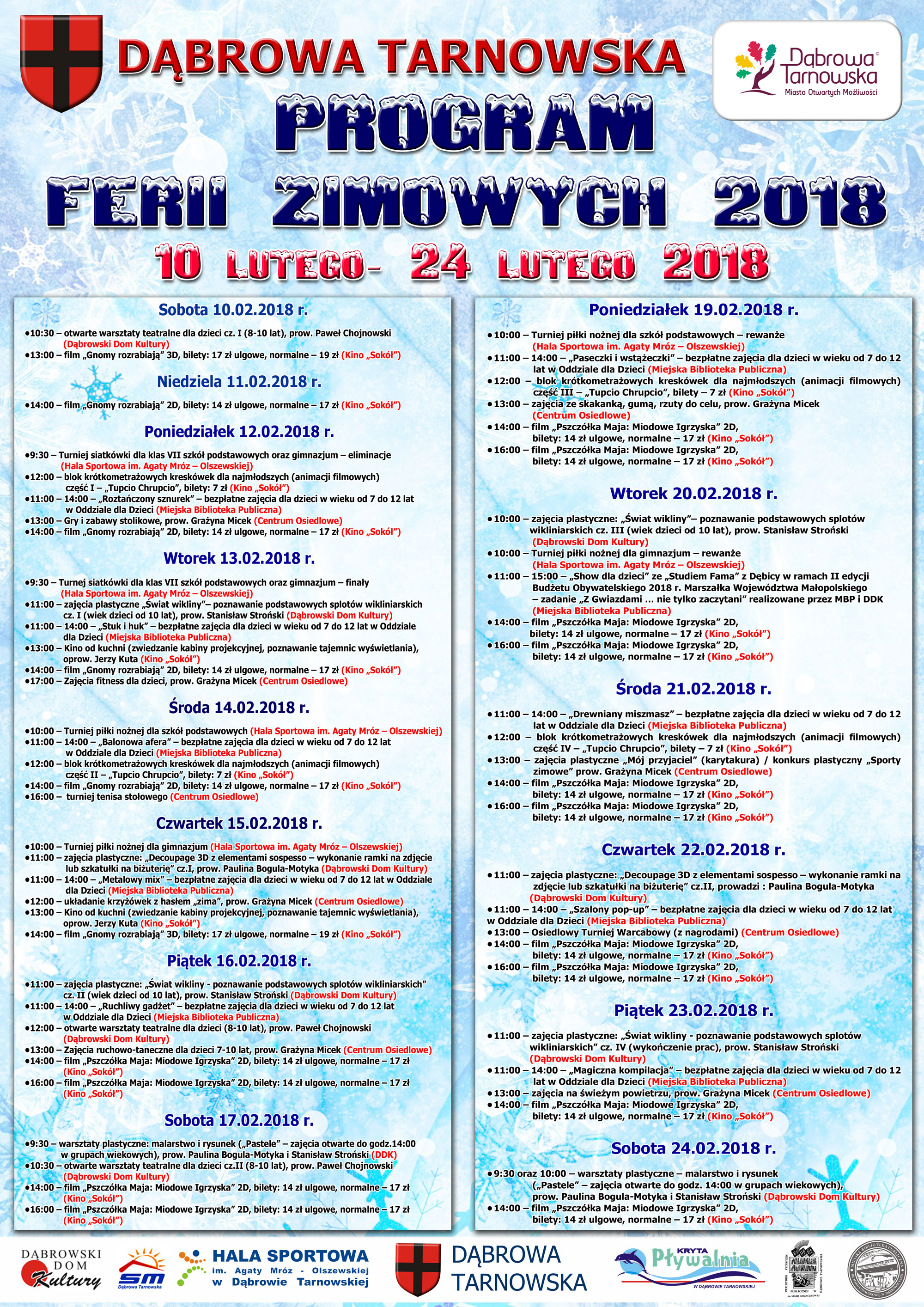 Plakat Ferie2018 Ferie zimowe 2018 w Dąbrowie Tarnowskiej