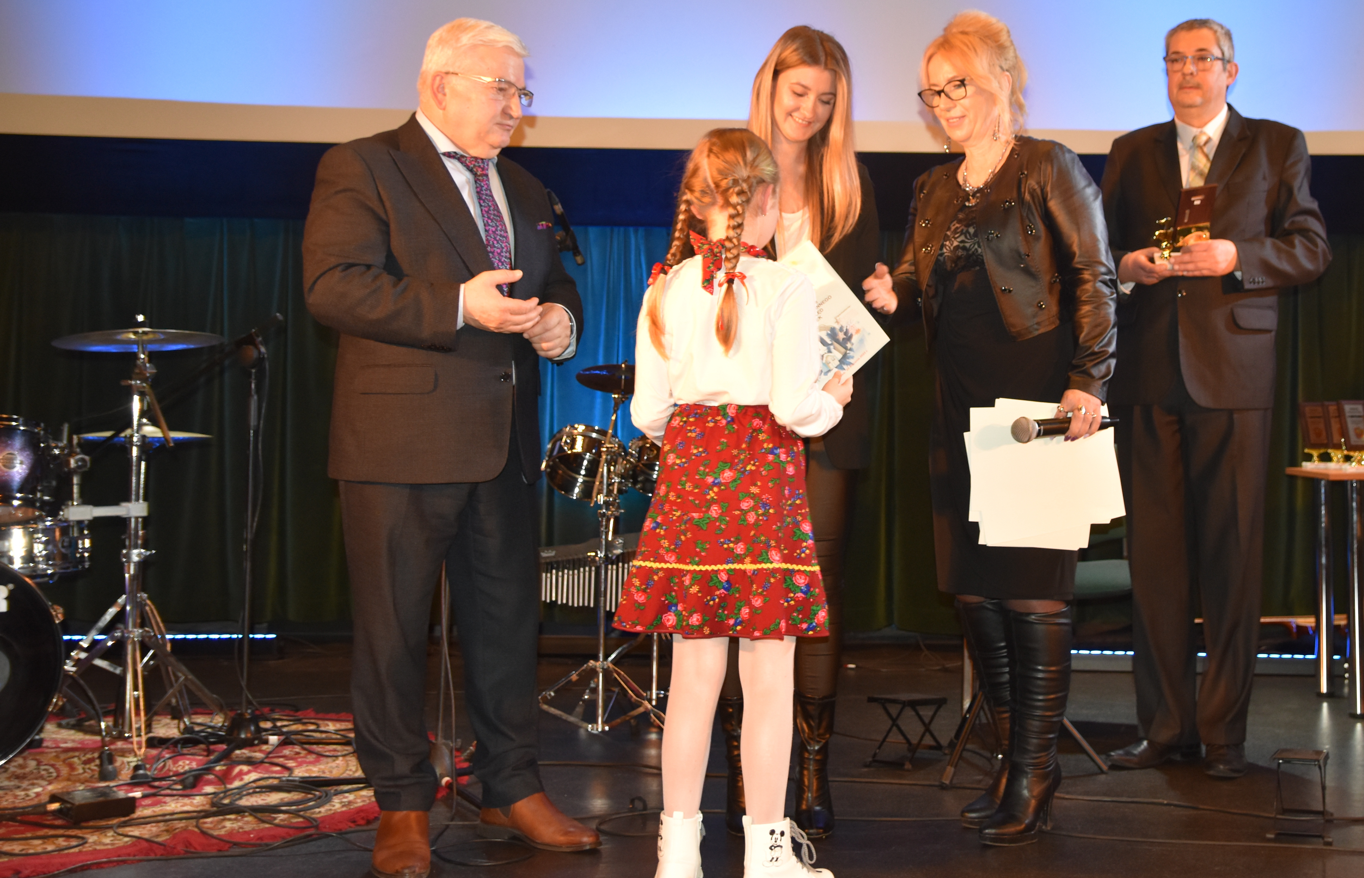 Nagrody i dyplomy wręczali: Krzysztof Kaczmarski – Burmistrz Dąbrowy Tarnowskiej, Renata Klimek – Urząd Gminy w Radgoszczy, Klaudia Pikul – Przewodnicząca jury oraz Paweł Chojnowski – Dyrektor DDK, który również prowadził imprezę jako konferansjer.
