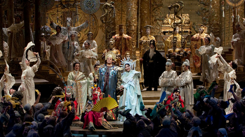 Sławny włoski reżyser filmowy i operowy tej inscenizacji zaprojektował także prawdziwie baśniową scenografię, która nieustannie zachwyca widownię. Pracę nad „Turandot” przerwała kompozytorowi śmierć, lecz dzięki staraniom legendarnego dyrygenta Artura Toscaniniego opera została dokończona – finałowy duet księcia Kalafa i tytułowej księżniczki dopisał Franco Alfano. Partytura Pucciniego obfituje w wielkie przeboje muzyki operowej; każdy zna choćby słynną arię Kalafa „Nessun dorma”. Jednak największe wymagania stawia wykonawczyni roli tytułowej: na premierze śpiewała ją Rosa Raisa, urodzona jako Róża Burchstein w Białymstoku, która ponoć straciła po tym występie głos. Nie grozi to Ninie Stemme, wykonującej z powodzeniem wielkie partie dramatyczne na największych scenach świata.