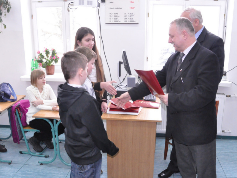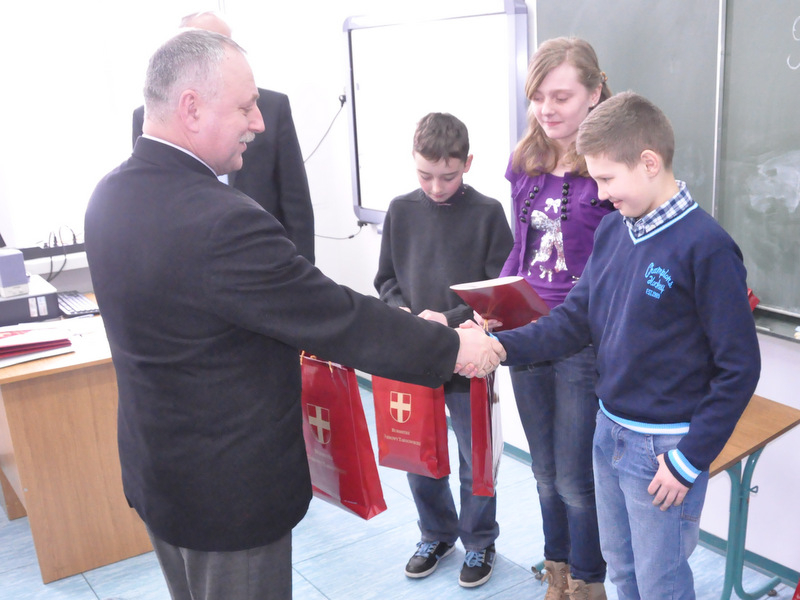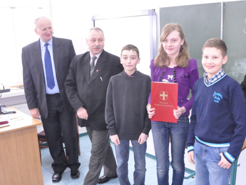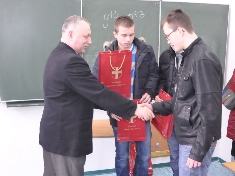 Na eliminacje powiatowe zakwalifikowano jedną drużynę z Gimnazjum Nr 1 w Dąbrowie Tarnowskiej w następującym składzie: Mateusz Kmieć, Tomasz Dyjak i Artur Guzik. Nagrody dla zwycięzców, odtwarzacze MP4 ufundował Burmistrz Dąbrowy Tarnowskiej Stanisław Początek, a wręczył Z-ca Burmistrza Marek Minorczyk, który podsumował konkurs, podziękował uczestnikom i ich opiekunom za udział i życzył zwycięzcom godnego reprezentowania naszej gminy w eliminacjach powiatowych, które odbędą się w Publicznej Szkole Podstawowej Nr 2 w Dąbrowie Tarnowskiej w dniu 16 kwietnia 2013 r. o godz. 9:00.
