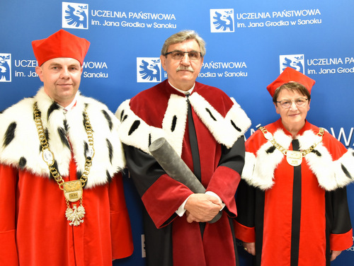 Trzeciego czerwca w Uczelni Państwowej im. Jana Grodka w Sanoku odbyło się uroczyste, historyczne posiedzenie Senatu Uczelni podczas którego prof. dr hab. n. med. Ireneusz Kotela otrzymał najwyższą godność akademicką tytuł Doktora Honoris Causa Uczelni Państwowej im. Jana Grodka w Sanoku. Odbyła się także uroczystość niezwykle doniosła dla studentów kierunku pielęgniarstwo – Symbolika Zawodu Pielęgniarki i Pielęgniarza, która na trwałe wpisała się w życie Uczelni, jako istotny element kształcenia studentów kierunku pielęgniarstwo. Wydarzenie rozpoczęło się od wprowadzenia sztandaru Uczelni i odśpiewania hymnu państwowego w wykonaniu chóru uczelnianego pod dyrekcją dr Moniki Brewczak. Zebranych powitał Rektor Uczelni dr inż. Mateusz Kaczmarski, który w swoim wystąpieniu przedstawił Uchwałę Senatu Uczelni o nadanie tytułu Doktora Honoris Causa, jej założenia i zasady nadawania godności. Więcej informacji na stronie http://fundacjatroskaiwiedza.pl/2022/06/prof-zw-dr-hab-n-med-ireneusz-kotela-uhonorowany-tytulem-doktora-honoris-causa-uczelni-panstwowej-im-jana-