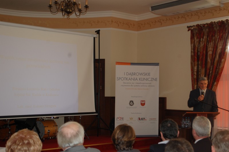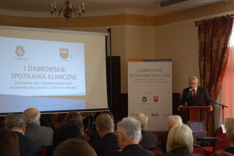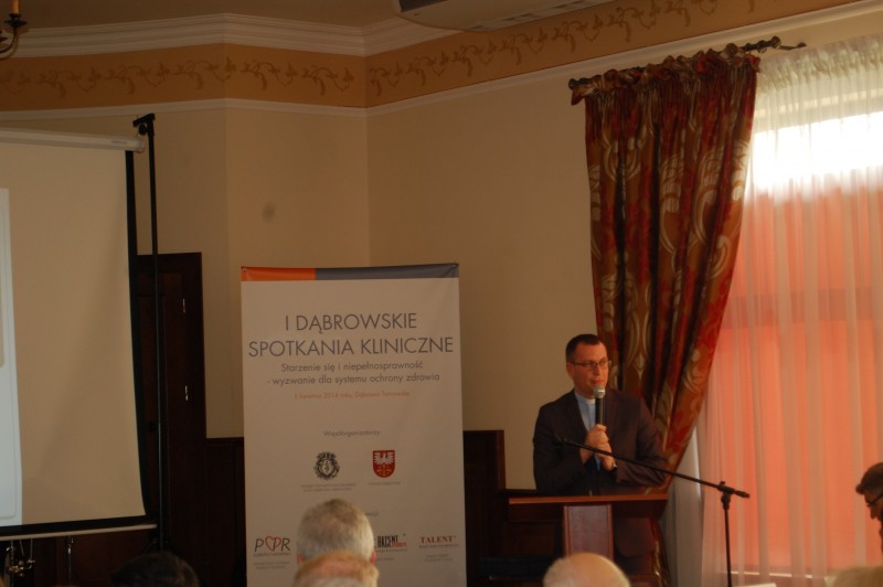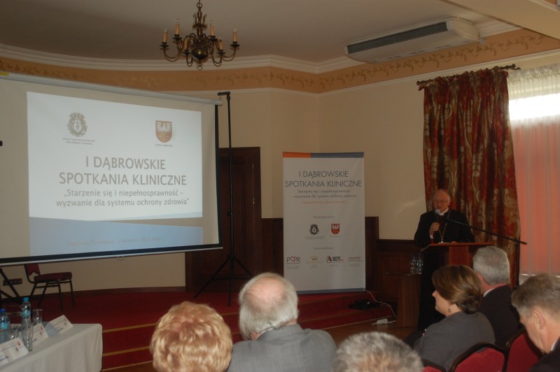 W dniu 5 kwietnia br. w Hotelu Cristal Park w Dąbrowie Tarnowskiej odbyło się I Dąbrowskie Spotkanie Kliniczne pt. „Starzenie się i niepełnosprawność – wyzwanie dla systemu ochrony zdrowia" zainicjowane przez środowisko medyczne oraz Starostwo Powiatowe w Dąbrowie Tarnowskiej. Organizatorami konferencji byli: prof. UJK dr hab. n. med. Ireneusz Kotela, dr n. med. Andrzej Kosiniak – Kamysz, dr n. med. Andrzej Kotela, dr n. med. Andrzej Radziszewski, dr n. o zdr. Marcin Mikos, dr n. o zdr. Maria Mika, dr n. med. Michał Surynt, Starosta Dąbrowski Tadeusz Kwiatkowski, Burmistrz Dąbrowy Tarnowskiej Stanisław Początek, Prezes Zarządu Hotelu Cristal Park Tadeusz Rzońca, Anna Mikos, Naczelnik Wydziału Rozwoju Lokalnego Edukacji i Zdrowia Mariola Smolorz oraz Dyrektor PCPR Agnieszka Anioł – Głuszek.