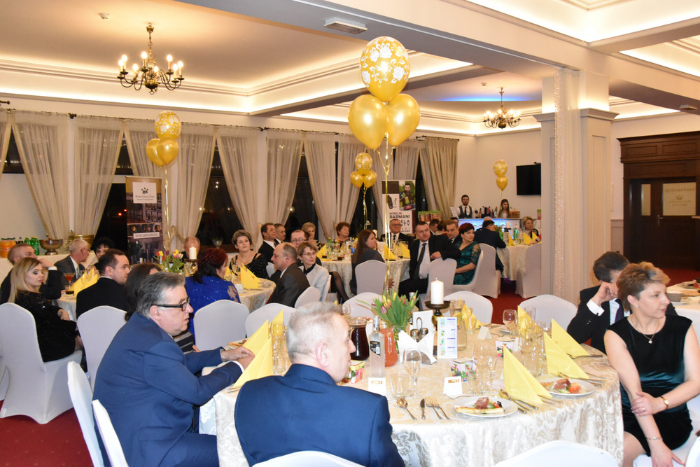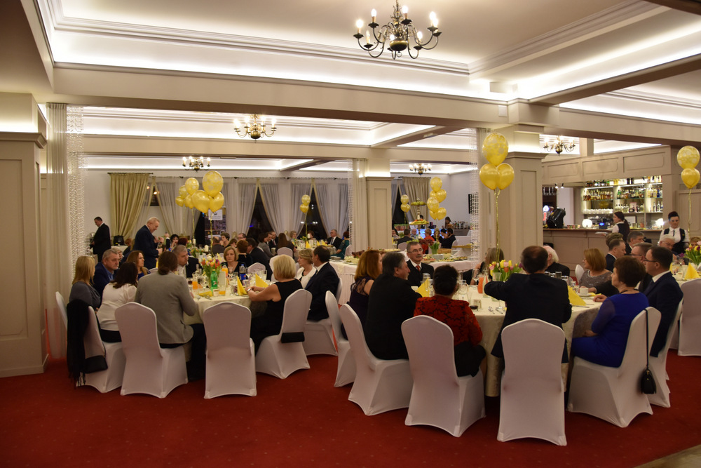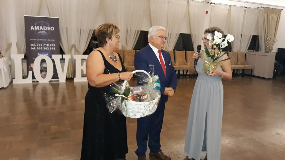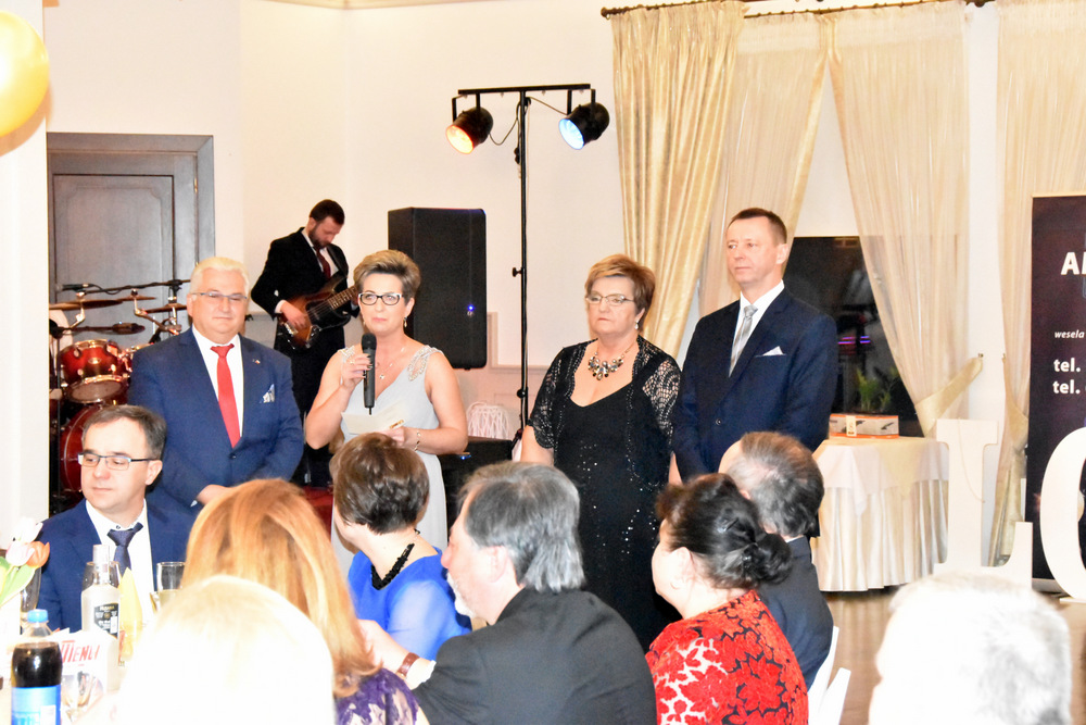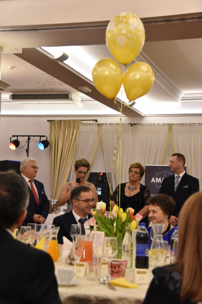„To dzięki takim osobom jak Państwo obecni na balu o wielkim sercu, otwartym na potrzeby drugiego człowieka możemy pomagać osobą potrzebującym i realizować zadania statutowe Stowarzyszenia: – powiedziała Pani Prezes, która wraz z Zarządem prowadzi pięć placówek a są to; Warsztaty Terapii Zajęciowej w Dąbrowie Tarnowskiej, Ośrodek Rewalidacyjno-Wychowawczy w Sutkowie, Środowiskowy Dom Samopomocy w Oleśnicy, Senior Plus w Dąbrowie Tarnowskiej oraz Bank Żywności prowadzony charytatywnie przez Rodziców dzieci niepełnosprawnych. Pani Prezes podziękowała wszystkim osobą które przyczyniły się do organizacji tegorocznego balu a byli nimi Zarząd Stowarzyszeni ,,Pomocna Dłoń’’, Burmistrz Dąbrowy Tarnowskiej Krzysztof Karczmarski oraz Pani Ewa Wielgus, która zadbała o suto zastawione stoły. Szczególne podziękowania popłynęły w stronę zespołu ,,Amadeo’’, który w tym roku zagrał dla Karola charytatywnie. Również charytatywnie z fotobutką przybył na bal pan Łukasz Sitko oraz Pan Damian Błachaniec, który serwował gościom pyszne drinki z których cały dochód przekazał na ,,Wojownika Karola”. W trakcie balu zakupić można było losy, które brały udział w losowaniu nagród głównych ufundowanych przez naszych Sponsorów, tj.: Firmę Rol-Bud, Pana Jakub Bartnik, Restaurację Cristal Park oraz Salon Kosmetyczny Glamour. Wszystkie osoby, które wylosowały bony do PSB Mrówka Dąbrowa Tarnowska przekazały je do placówek prowadzonych przez Stowarzyszenie, za co serdecznie dziękujemy. Pani Halina Sarat odczytała zebranym list okolicznościowy, który wpłynął na adres Stowarzyszenia od Rodziny Karola, w którym podziękowała organizatorom za zorganizowanie balu, a gościom życzyła wspaniałej zabawy.