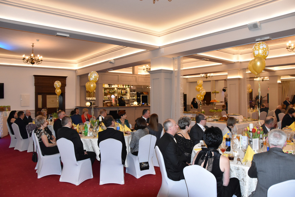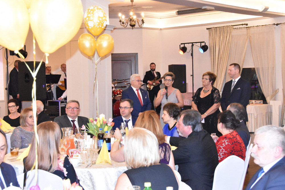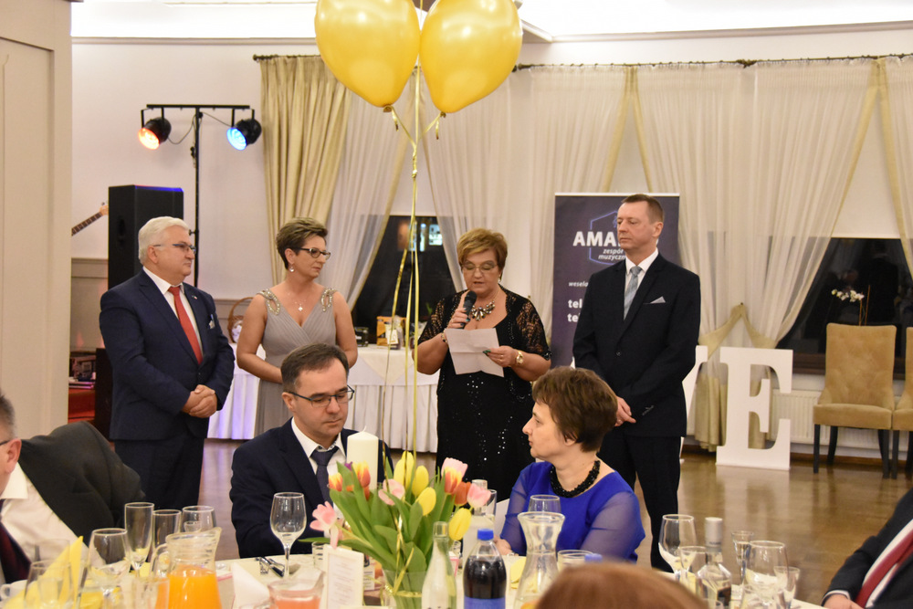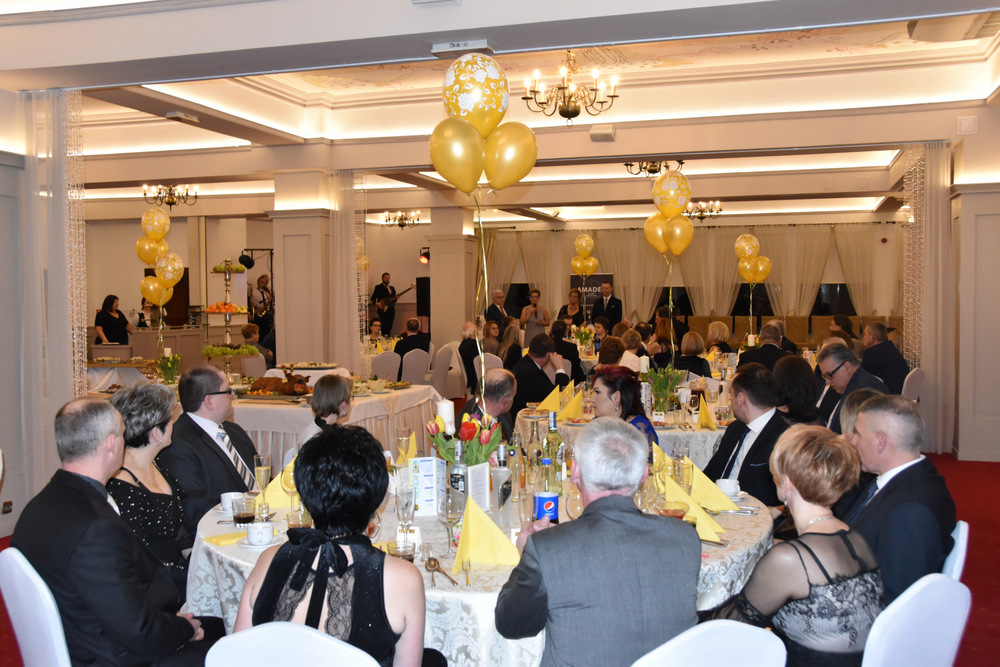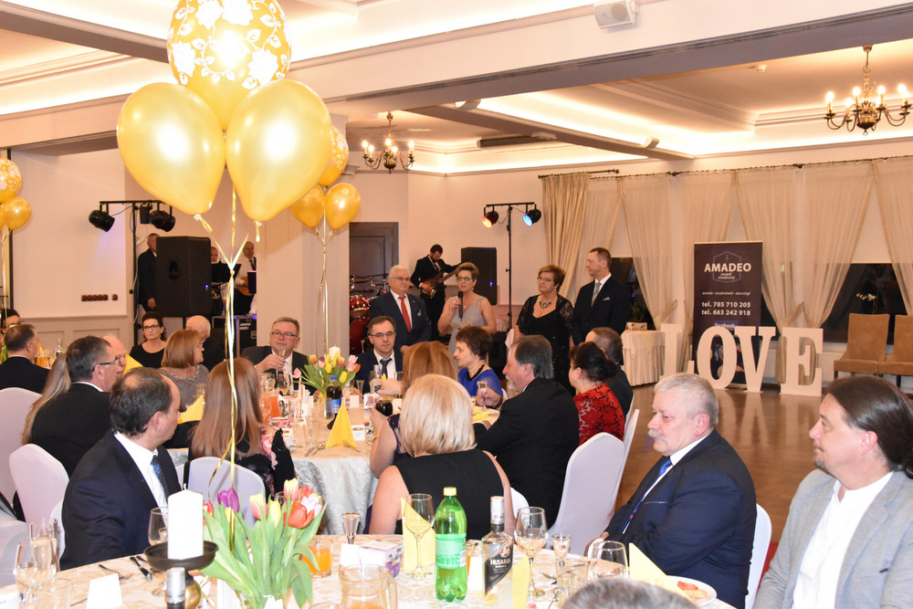 „To dzięki takim osobom jak Państwo obecni na balu o wielkim sercu, otwartym na potrzeby drugiego człowieka możemy pomagać osobą potrzebującym i realizować zadania statutowe Stowarzyszenia: – powiedziała Pani Prezes, która wraz z Zarządem prowadzi pięć placówek a są to; Warsztaty Terapii Zajęciowej w Dąbrowie Tarnowskiej, Ośrodek Rewalidacyjno-Wychowawczy w Sutkowie, Środowiskowy Dom Samopomocy w Oleśnicy, Senior Plus w Dąbrowie Tarnowskiej oraz Bank Żywności prowadzony charytatywnie przez Rodziców dzieci niepełnosprawnych. Pani Prezes podziękowała wszystkim osobą które przyczyniły się do organizacji tegorocznego balu a byli nimi Zarząd Stowarzyszeni ,,Pomocna Dłoń’’, Burmistrz Dąbrowy Tarnowskiej Krzysztof Karczmarski oraz Pani Ewa Wielgus, która zadbała o suto zastawione stoły. Szczególne podziękowania popłynęły w stronę zespołu ,,Amadeo’’, który w tym roku zagrał dla Karola charytatywnie. Również charytatywnie z fotobutką przybył na bal pan Łukasz Sitko oraz Pan Damian Błachaniec, który serwował gościom pyszne drinki z których cały dochód przekazał na ,,Wojownika Karola”. W trakcie balu zakupić można było losy, które brały udział w losowaniu nagród głównych ufundowanych przez naszych Sponsorów, tj.: Firmę Rol-Bud, Pana Jakub Bartnik, Restaurację Cristal Park oraz Salon Kosmetyczny Glamour. Wszystkie osoby, które wylosowały bony do PSB Mrówka Dąbrowa Tarnowska przekazały je do placówek prowadzonych przez Stowarzyszenie, za co serdecznie dziękujemy. Pani Halina Sarat odczytała zebranym list okolicznościowy, który wpłynął na adres Stowarzyszenia od Rodziny Karola, w którym podziękowała organizatorom za zorganizowanie balu, a gościom życzyła wspaniałej zabawy.