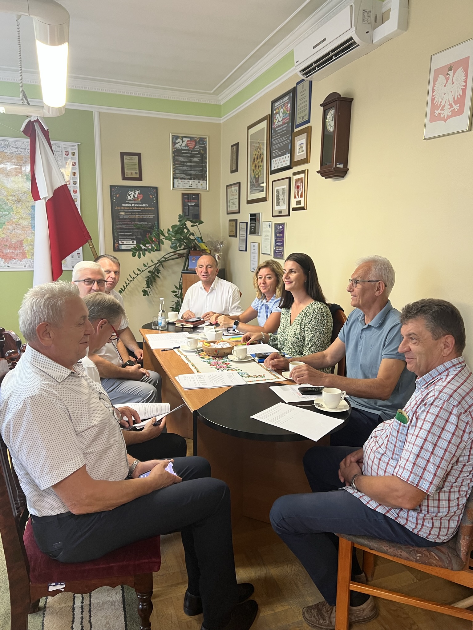 28 sierpnia 2023 roku w Urzędzie Miejskim w Dąbrowie Tarnowskiej gościli przedstawiciele Państwowego Gospodarstwa Wodnego „Wody Polskie”, Starostwa Powiatowego w Dąbrowie Tarnowskiej oraz samorządów zainteresowanych budową zbiornika retencyjnego w m. Żelazówka ze Szczucina, Olesna, Mędrzechowa i Dąbrowy Tarnowskiej.