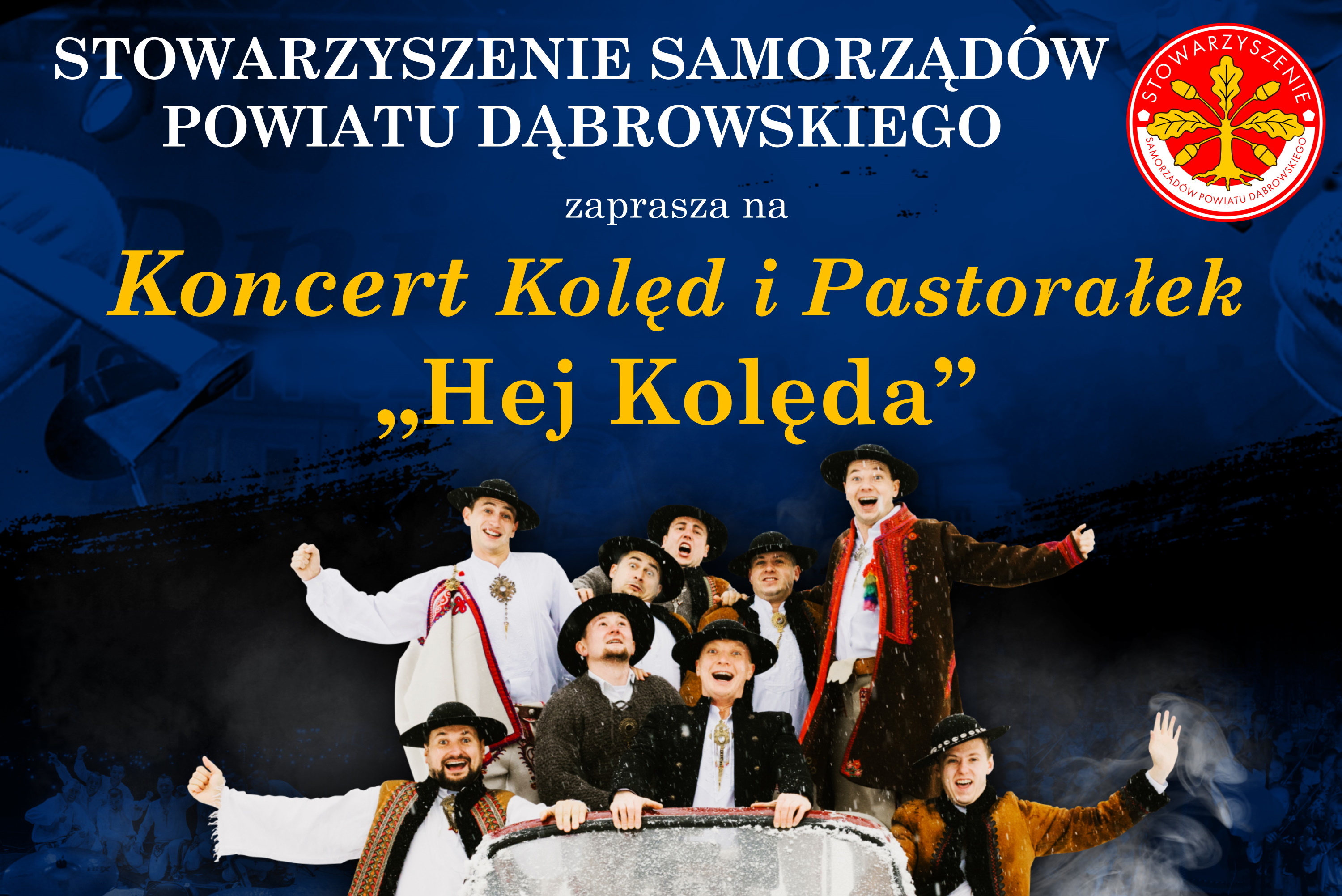 Starosta Dąbrowski Lesław Wieczorek, w imieniu Stowarzyszenia Samorządów Powiatu Dąbrowskiego, zaprasza na Koncert Kolęd i Pastorałek „Hej Kolęda” Kapeli Ciupaga z Łącka który odbędzie się 29 grudnia 2022 r. (czwartek) w kościele pw. NMP Szkaplerznej w Dąbrowie Tarnowskiej.